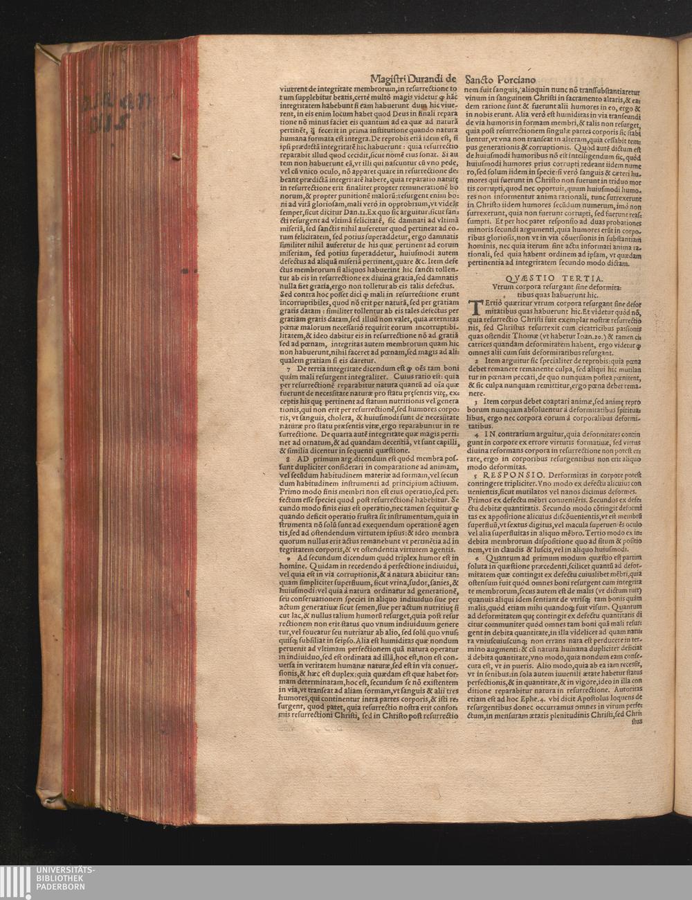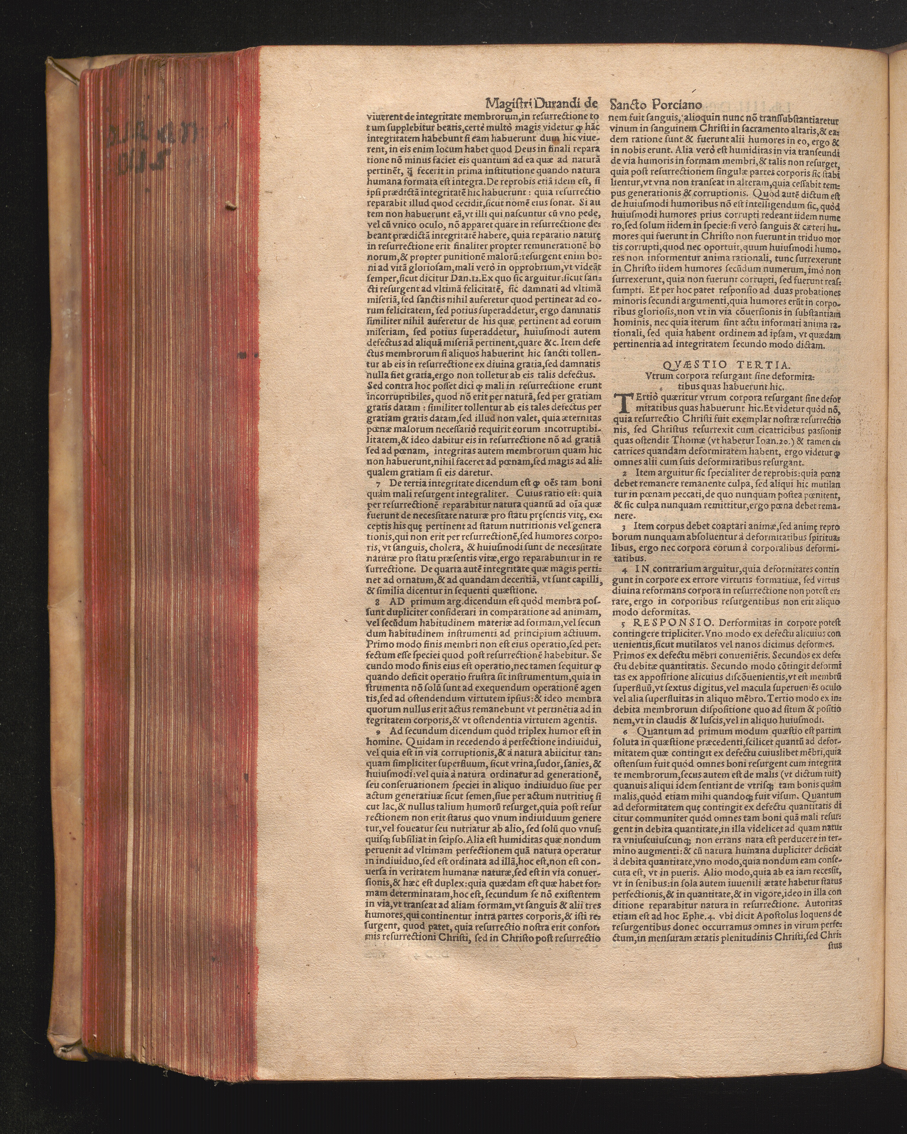 DN. DVRANDI|| à Sancto Portiano, in Senten=||tias Theologicas Petri Lombardi|| Commentariorum libri|| quatuor.|| / Primùm quidem per Nicolaum à Martimbos, eximium Nauarrensis|| Collegij Theologum, nunc verò denuo per alios quosdam|| non inferioris notæ Doctores quanta fieri po-||tuit cura diligentiáque emendati.|| Vná cum Auctoris Vita, & copiosissimo|| decisionum omnium|| Indice.||