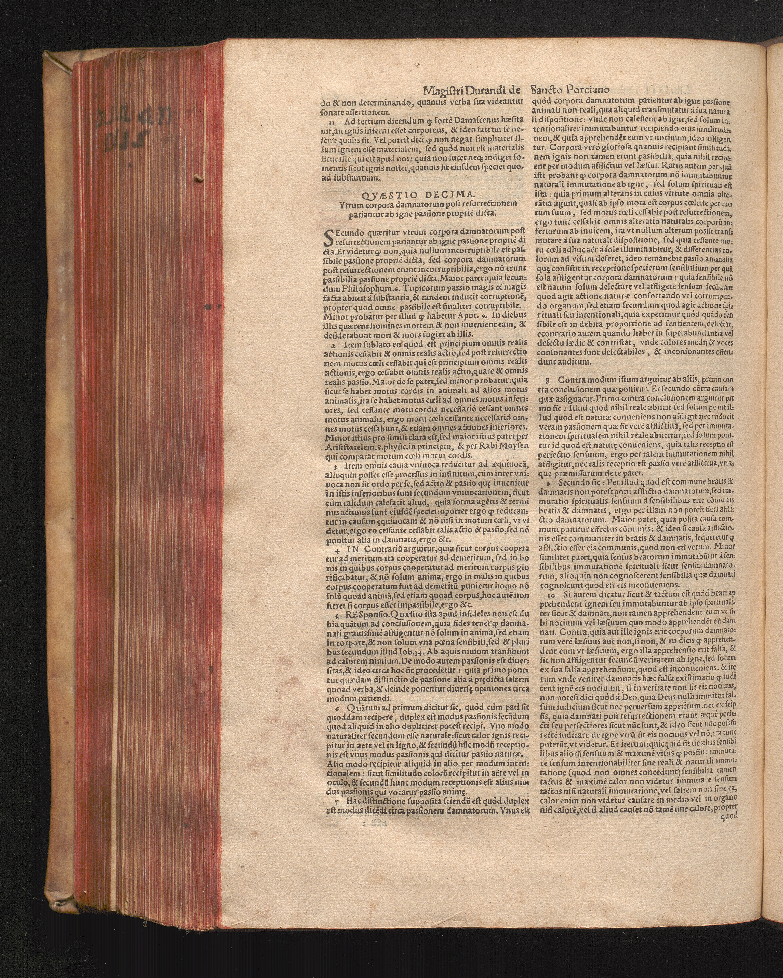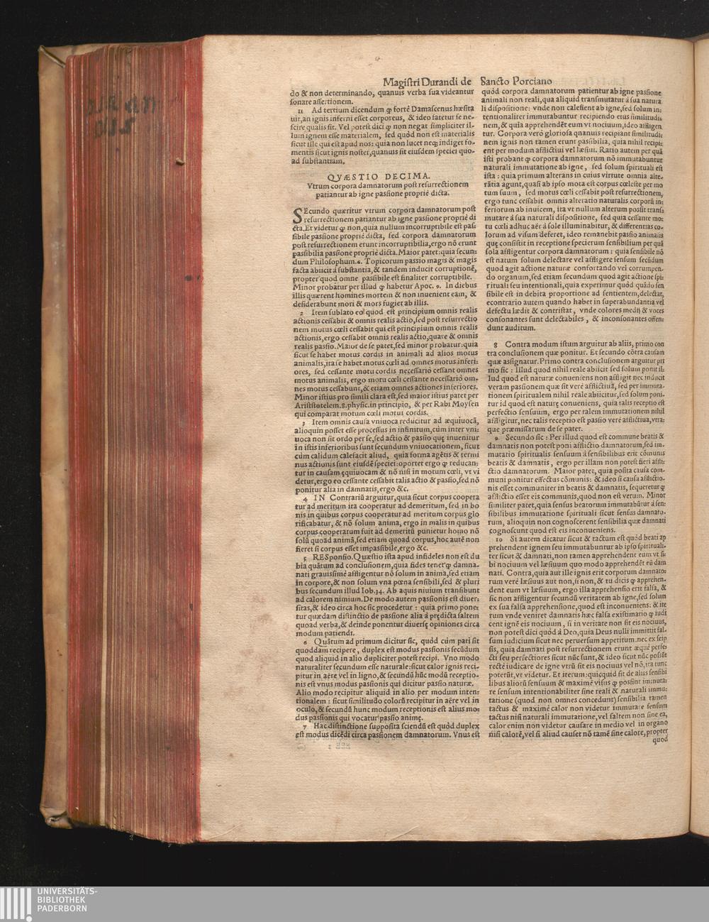 DN. DVRANDI|| à Sancto Portiano, in Senten=||tias Theologicas Petri Lombardi|| Commentariorum libri|| quatuor.|| / Primùm quidem per Nicolaum à Martimbos, eximium Nauarrensis|| Collegij Theologum, nunc verò denuo per alios quosdam|| non inferioris notæ Doctores quanta fieri po-||tuit cura diligentiáque emendati.|| Vná cum Auctoris Vita, & copiosissimo|| decisionum omnium|| Indice.||