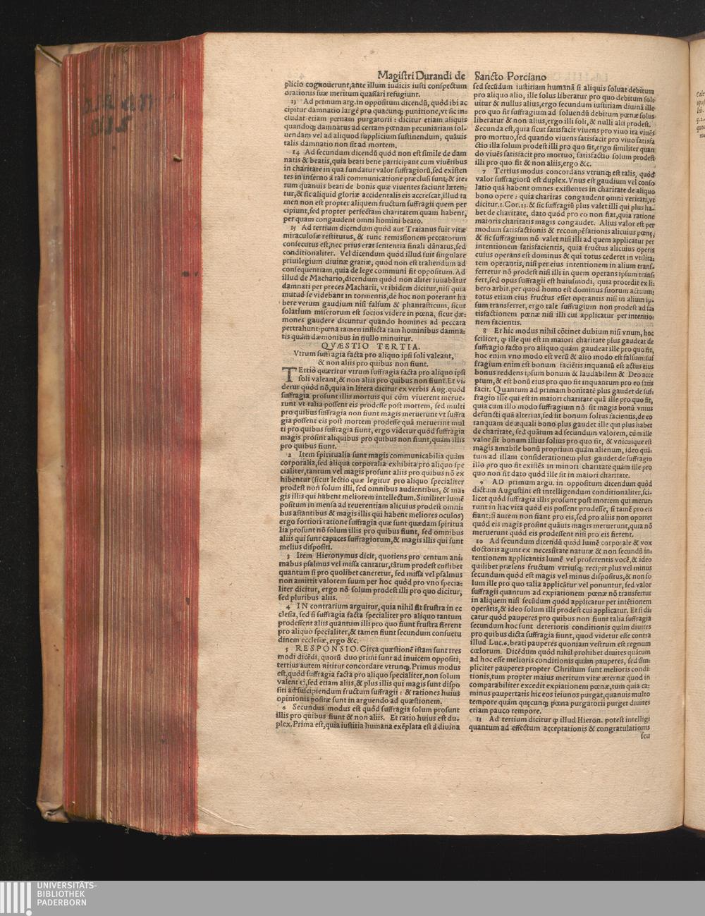 DN. DVRANDI|| à Sancto Portiano, in Senten=||tias Theologicas Petri Lombardi|| Commentariorum libri|| quatuor.|| / Primùm quidem per Nicolaum à Martimbos, eximium Nauarrensis|| Collegij Theologum, nunc verò denuo per alios quosdam|| non inferioris notæ Doctores quanta fieri po-||tuit cura diligentiáque emendati.|| Vná cum Auctoris Vita, & copiosissimo|| decisionum omnium|| Indice.||