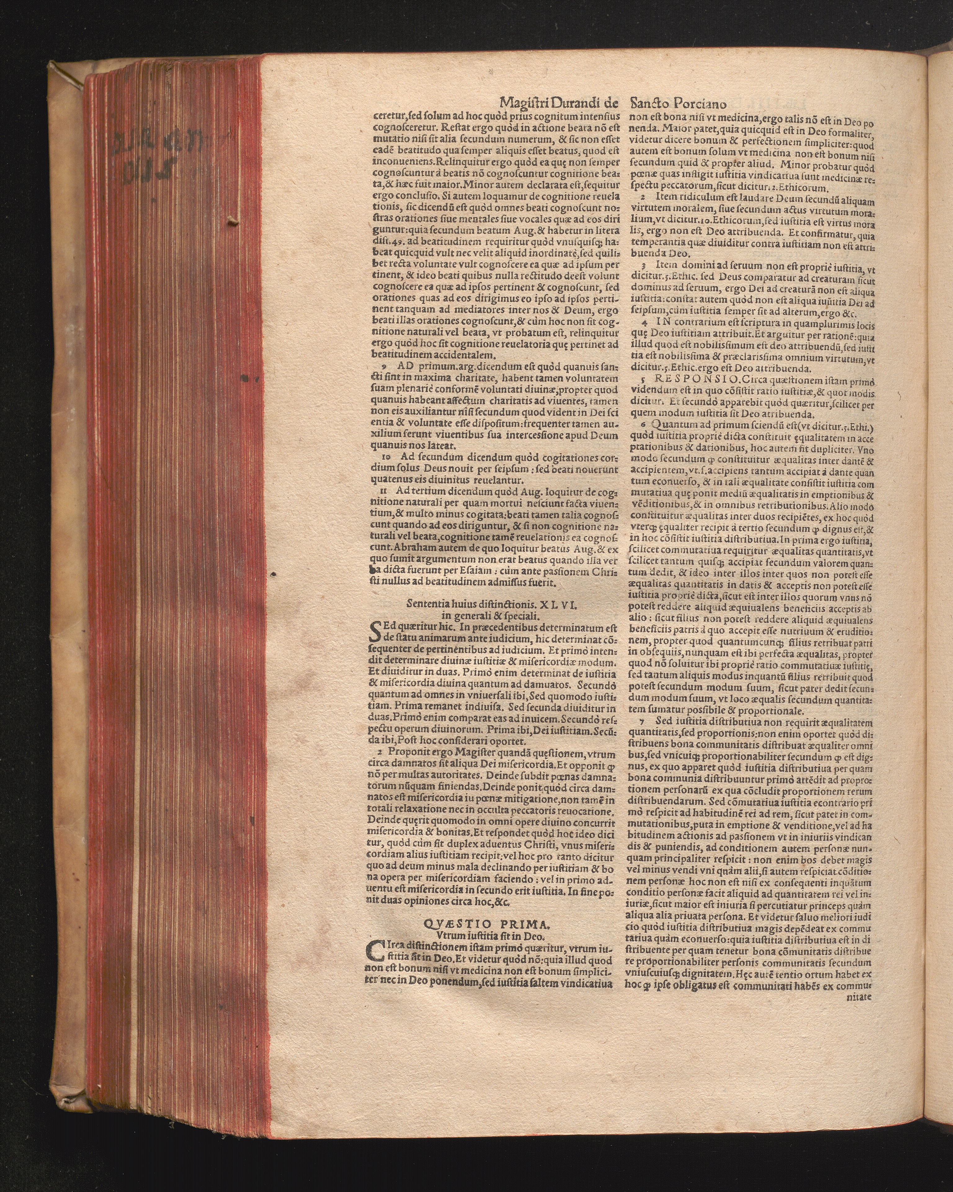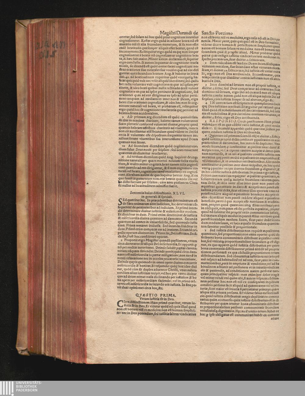DN. DVRANDI|| à Sancto Portiano, in Senten=||tias Theologicas Petri Lombardi|| Commentariorum libri|| quatuor.|| / Primùm quidem per Nicolaum à Martimbos, eximium Nauarrensis|| Collegij Theologum, nunc verò denuo per alios quosdam|| non inferioris notæ Doctores quanta fieri po-||tuit cura diligentiáque emendati.|| Vná cum Auctoris Vita, & copiosissimo|| decisionum omnium|| Indice.||