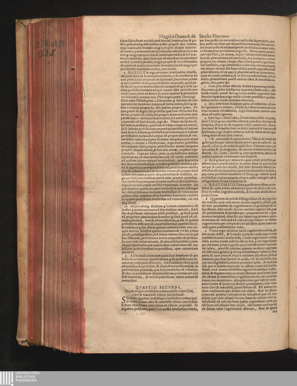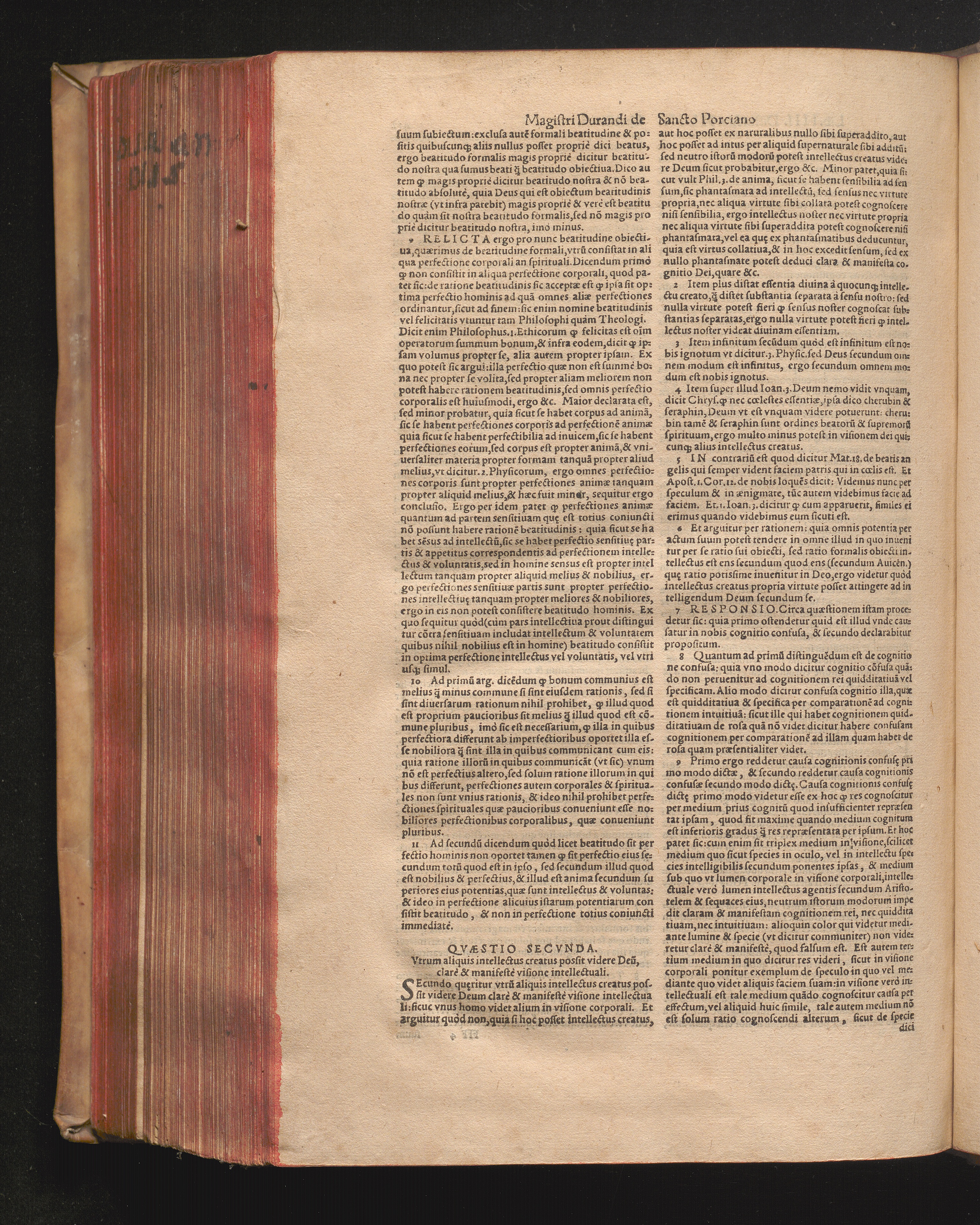 DN. DVRANDI|| à Sancto Portiano, in Senten=||tias Theologicas Petri Lombardi|| Commentariorum libri|| quatuor.|| / Primùm quidem per Nicolaum à Martimbos, eximium Nauarrensis|| Collegij Theologum, nunc verò denuo per alios quosdam|| non inferioris notæ Doctores quanta fieri po-||tuit cura diligentiáque emendati.|| Vná cum Auctoris Vita, & copiosissimo|| decisionum omnium|| Indice.||