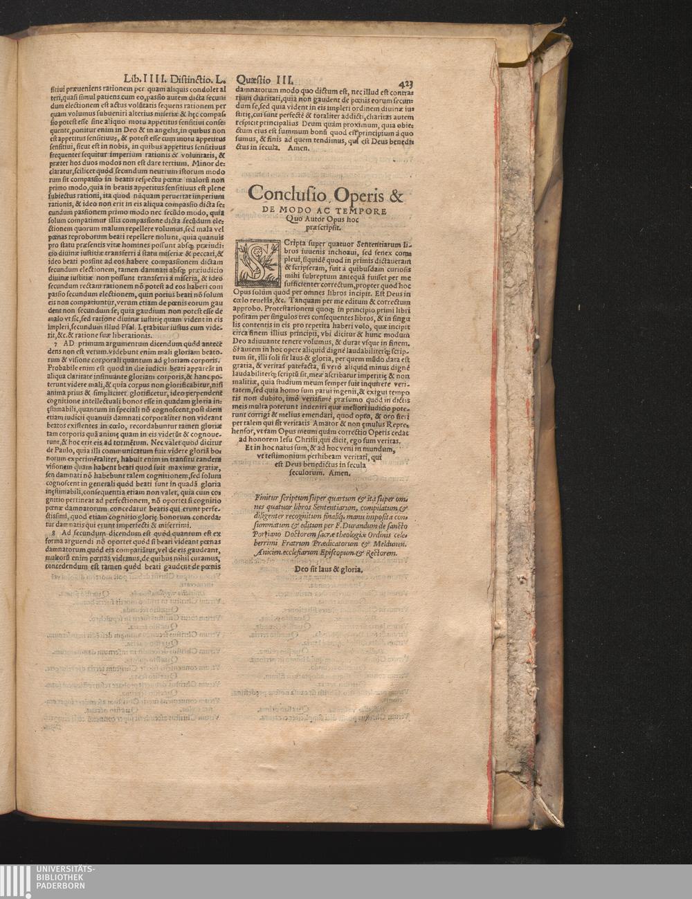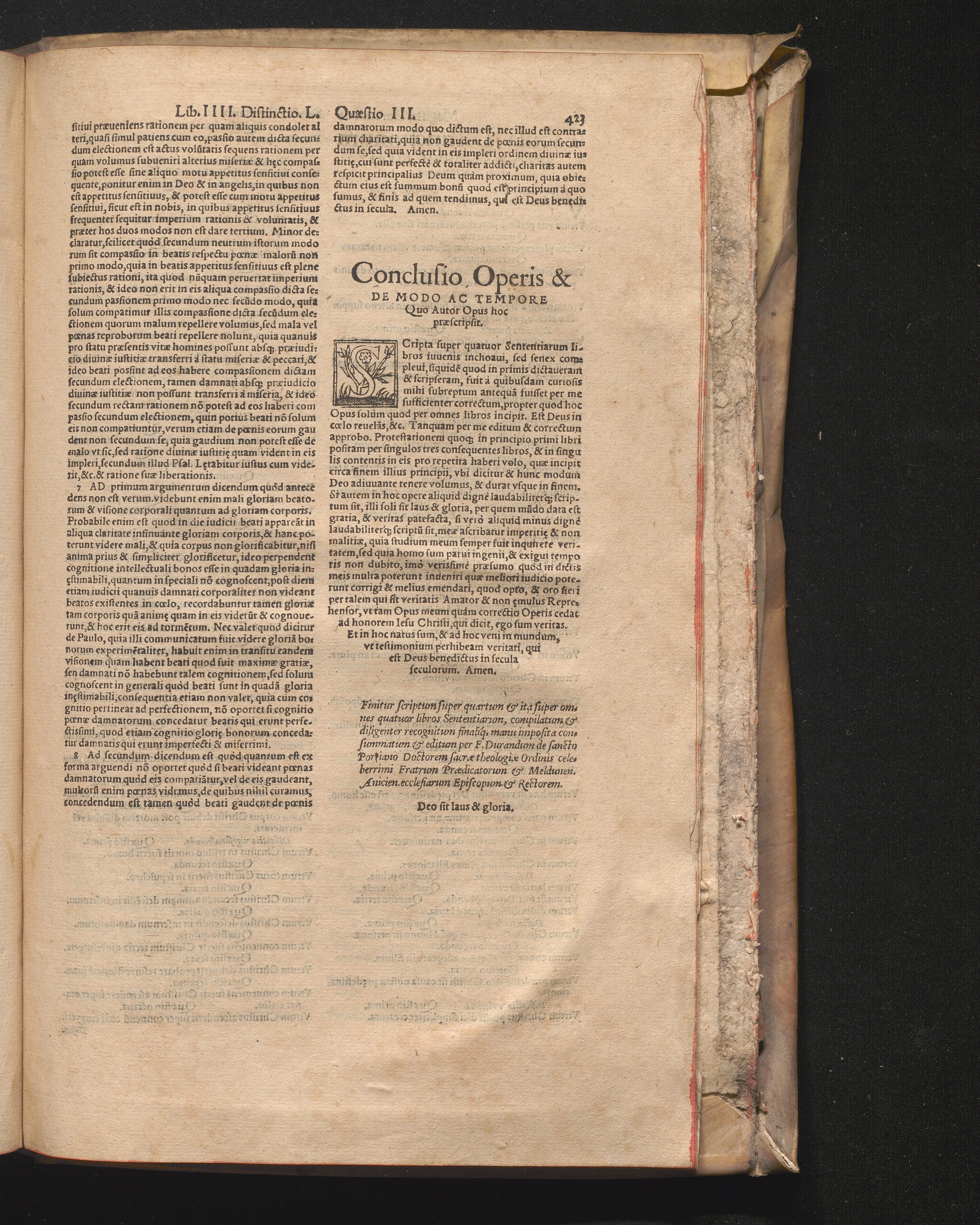 DN. DVRANDI|| à Sancto Portiano, in Senten=||tias Theologicas Petri Lombardi|| Commentariorum libri|| quatuor.|| / Primùm quidem per Nicolaum à Martimbos, eximium Nauarrensis|| Collegij Theologum, nunc verò denuo per alios quosdam|| non inferioris notæ Doctores quanta fieri po-||tuit cura diligentiáque emendati.|| Vná cum Auctoris Vita, & copiosissimo|| decisionum omnium|| Indice.||