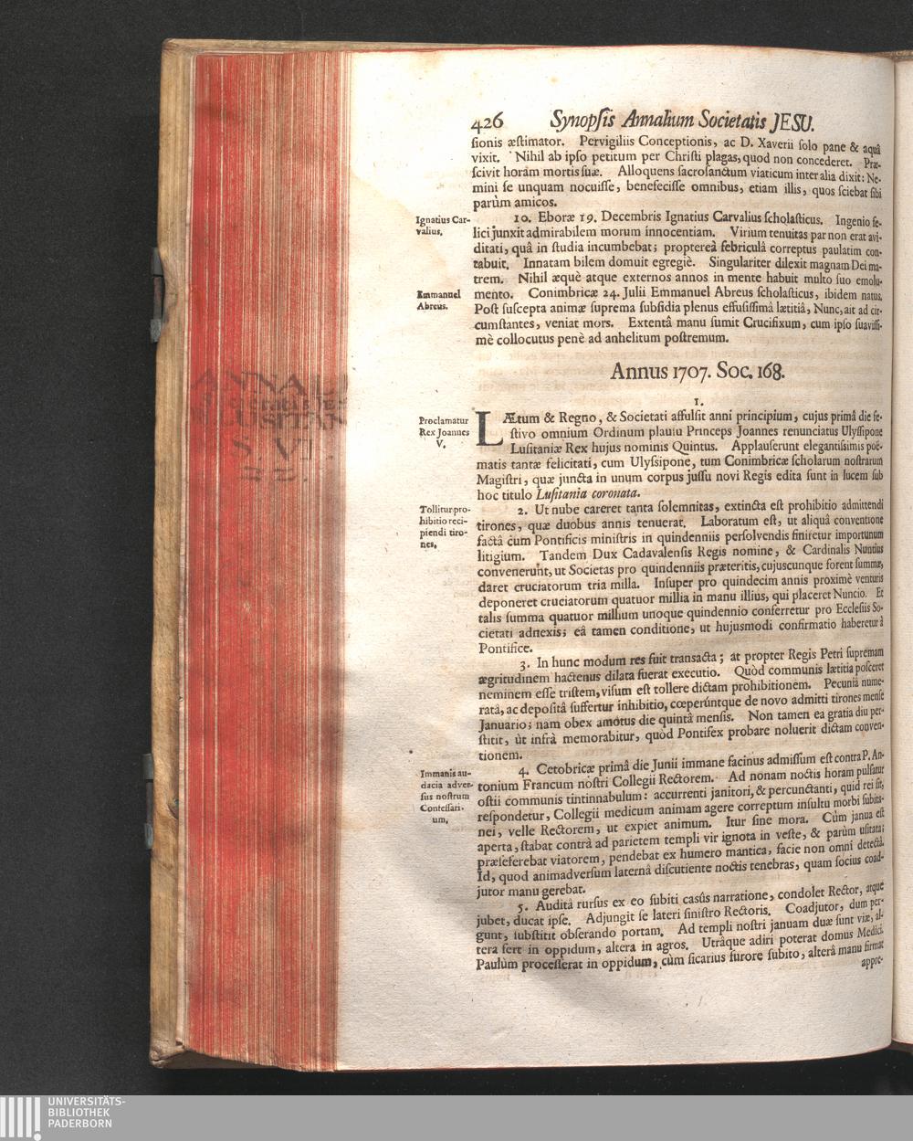 Annus 1707. Soc. 168.