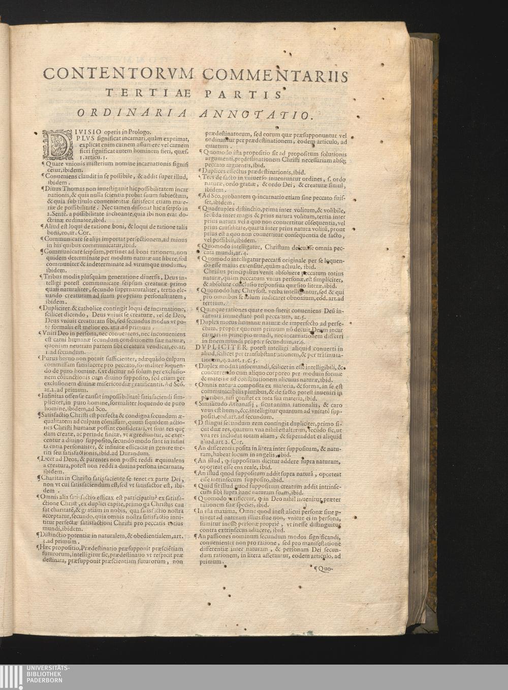 Contentorvm Commentariis Tertiae Partis Ordinaria Annotatio.