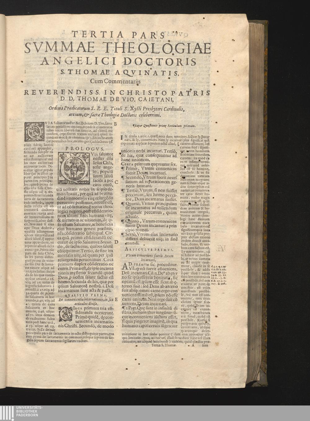 Tomvs Dvodecimvs (1593) Complectens Tertiam Partem Summæ Theologiæ. Cum Commentariis Reuerendiss. D. Thomæ de Vio Caietani Cardinalis S. Sixti, Et Opvscvlis Eivsdem In tres Tomos distinctis