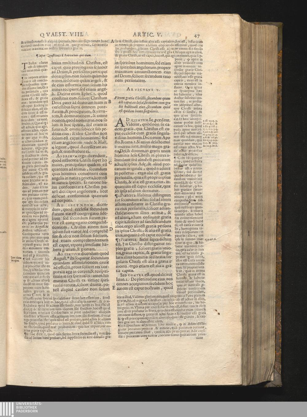 5. Vtrum gratia secu[n]dum quam est caput ecclesiӕ, sit eadem cum gratia habituali[...]