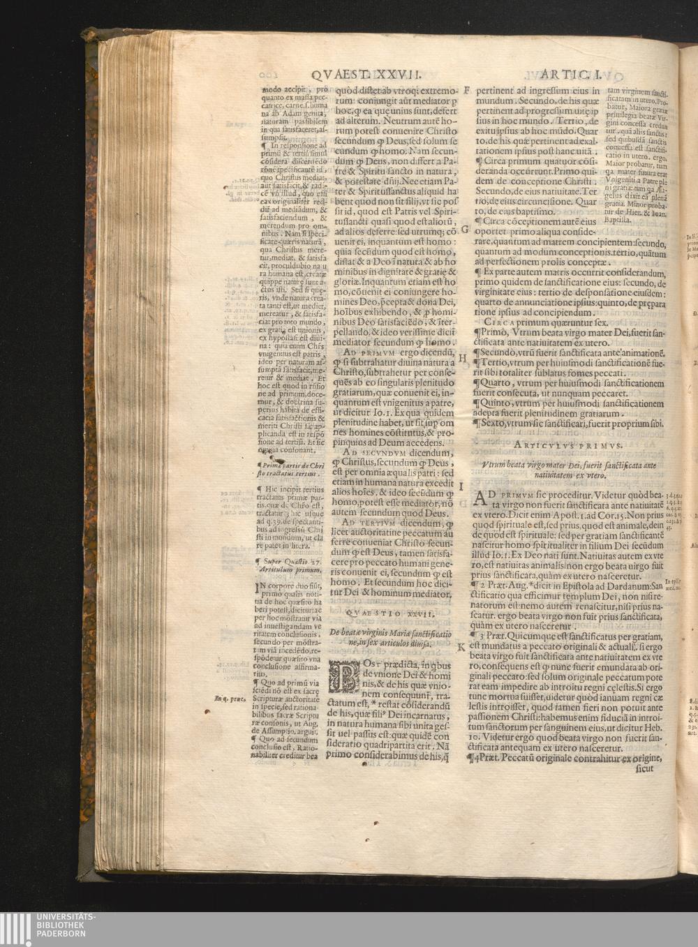 Qvaestio XXVII. De sanctificatione beatӕ Virginis.