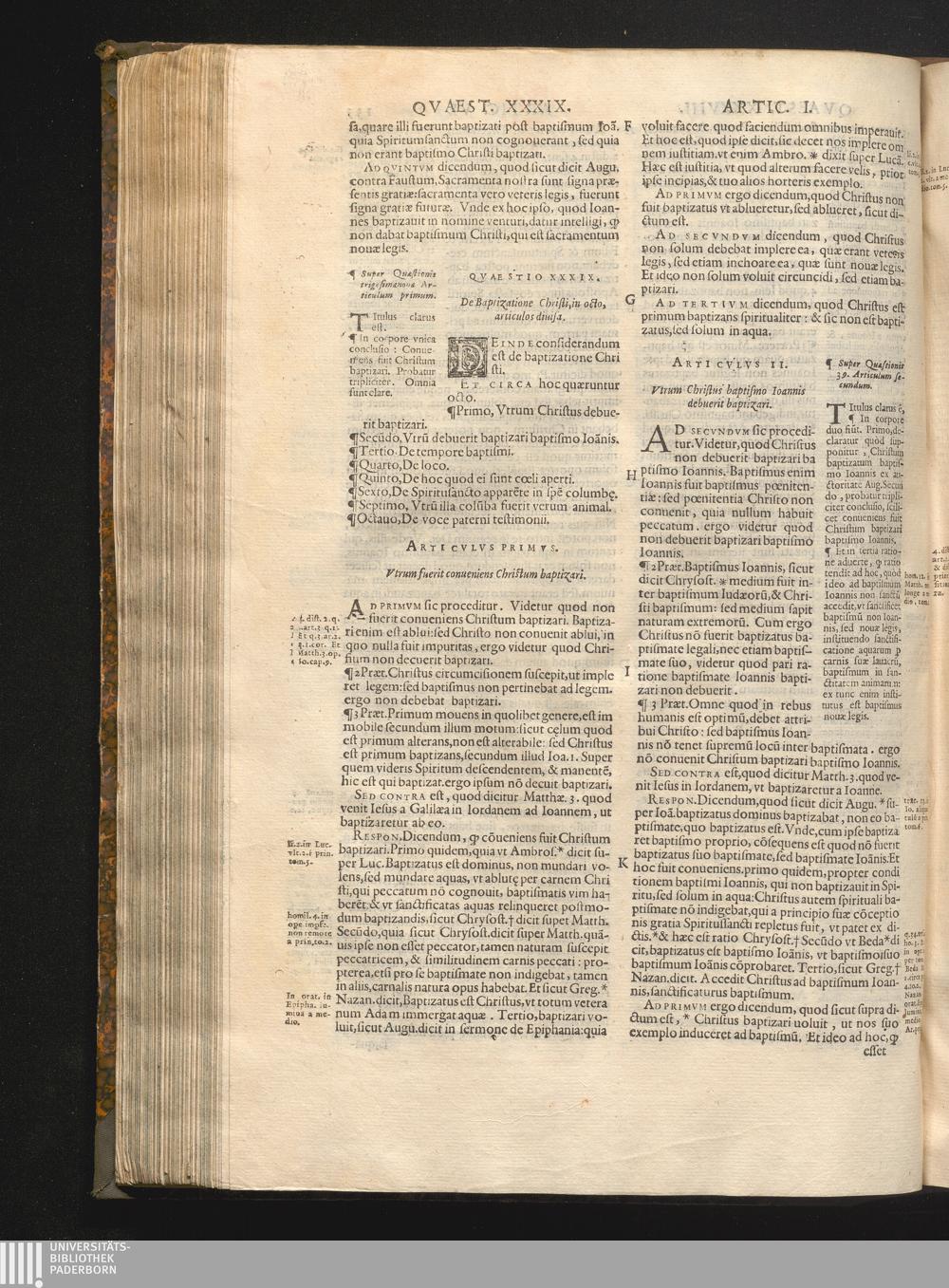 Qvaestio XXXIX. De baptizatione Christi.