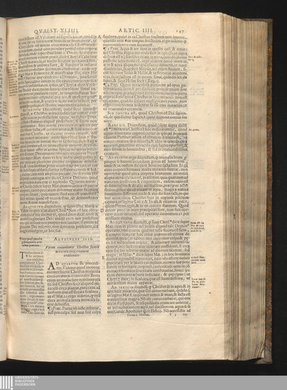 Qvaestio XLIIII. De miraculis Christi in speciali.