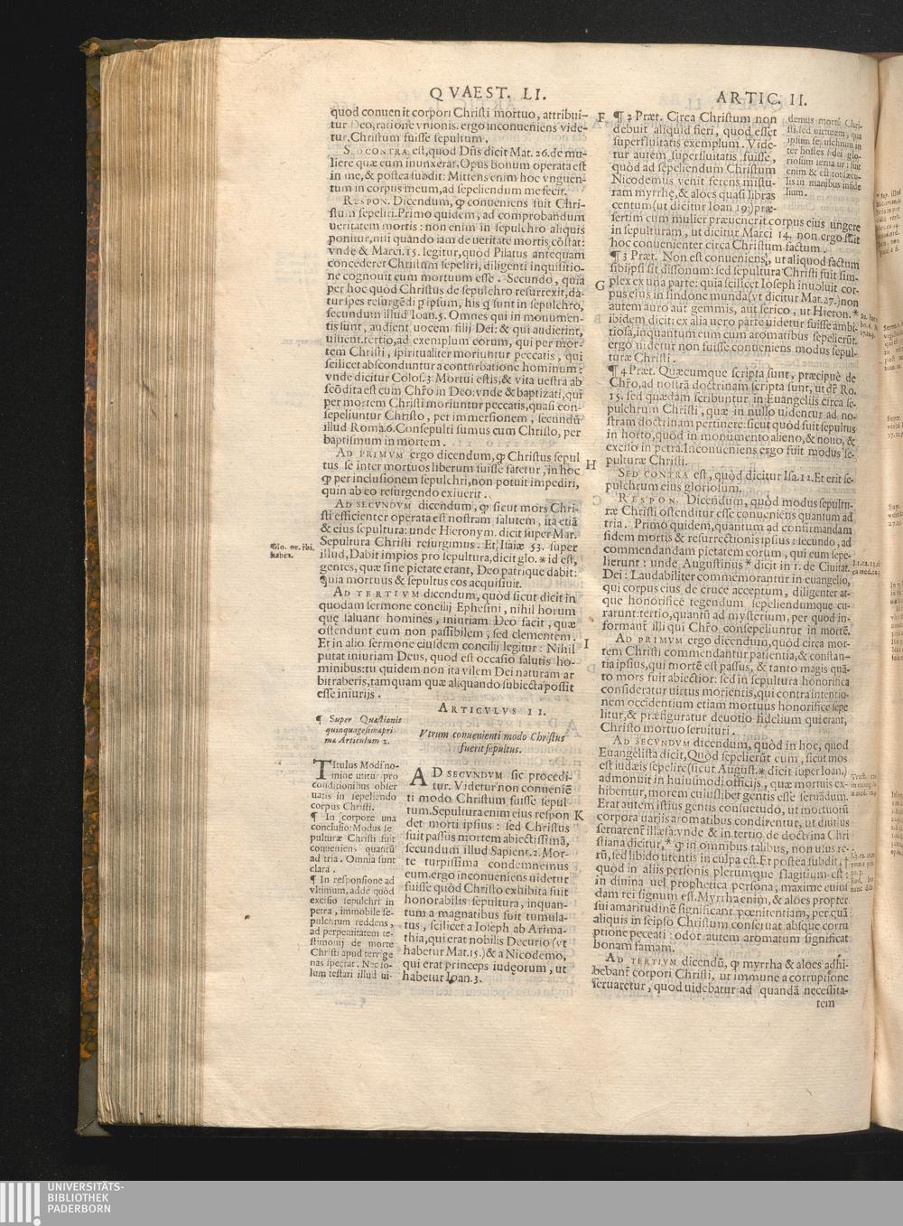 Qvaestio LI. De sepoltura Christi.