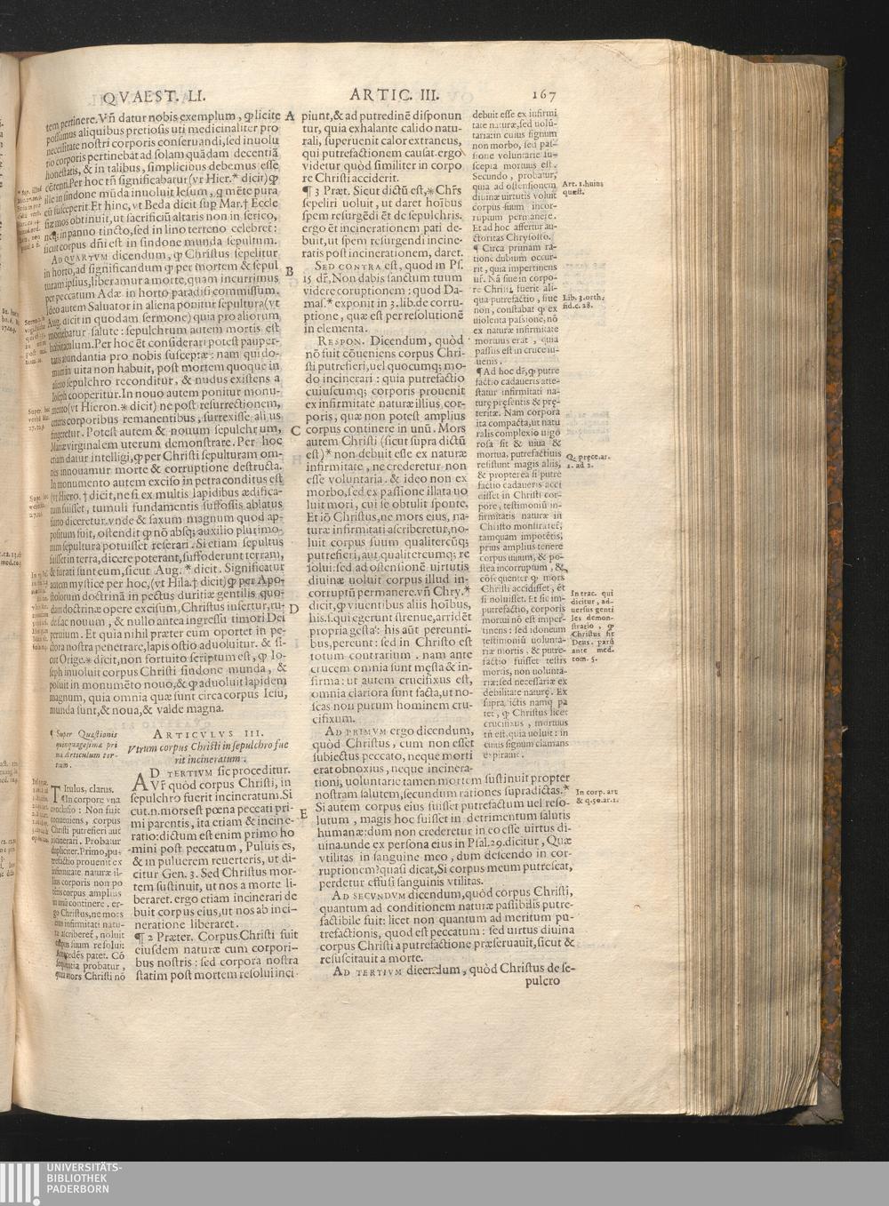 3. Vtrum corpus eius fuerit in sepulchro resolutum.