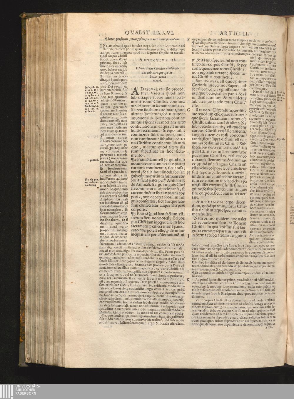 2. Vtrum totus Christus sit sub vtraque specie sacramenti.