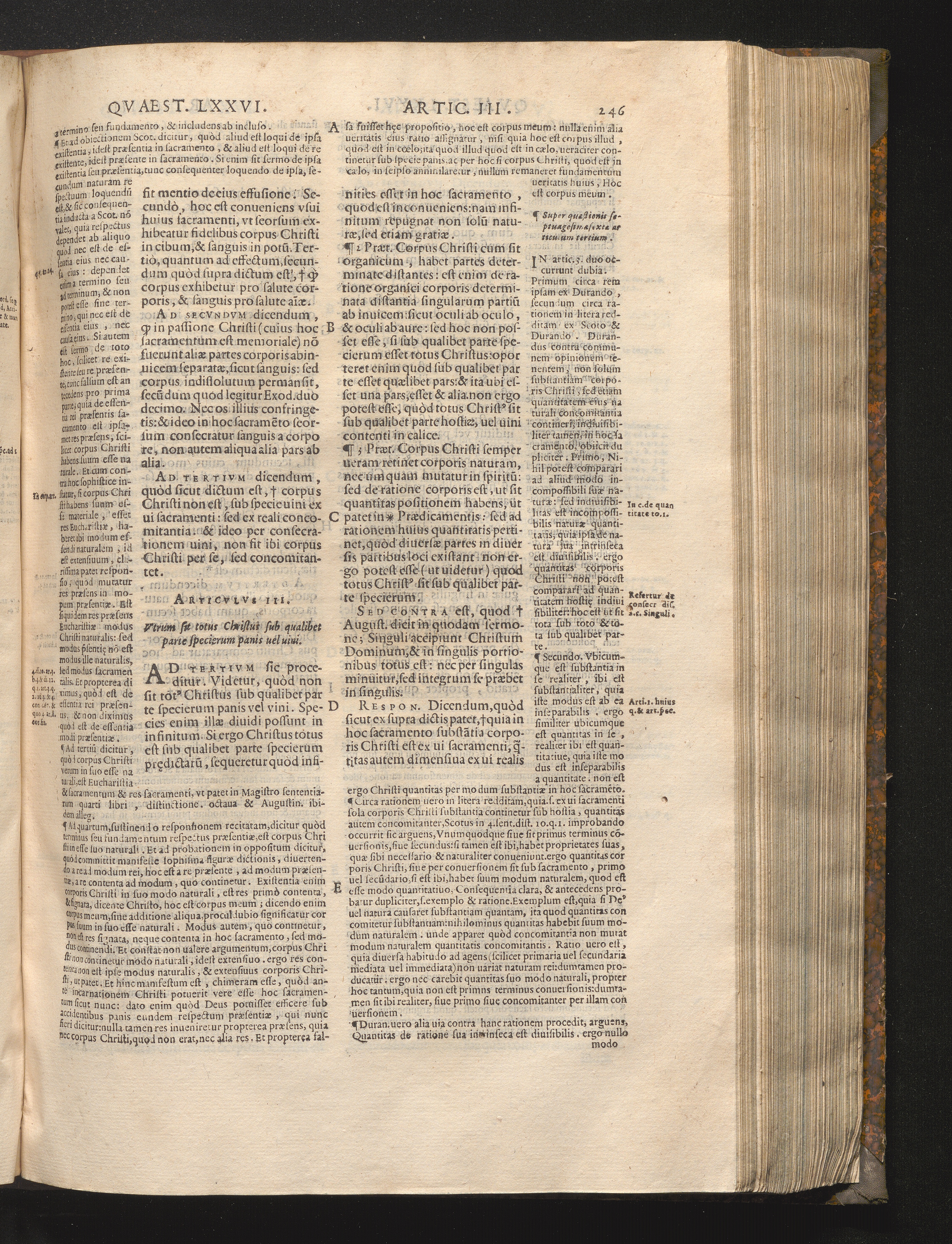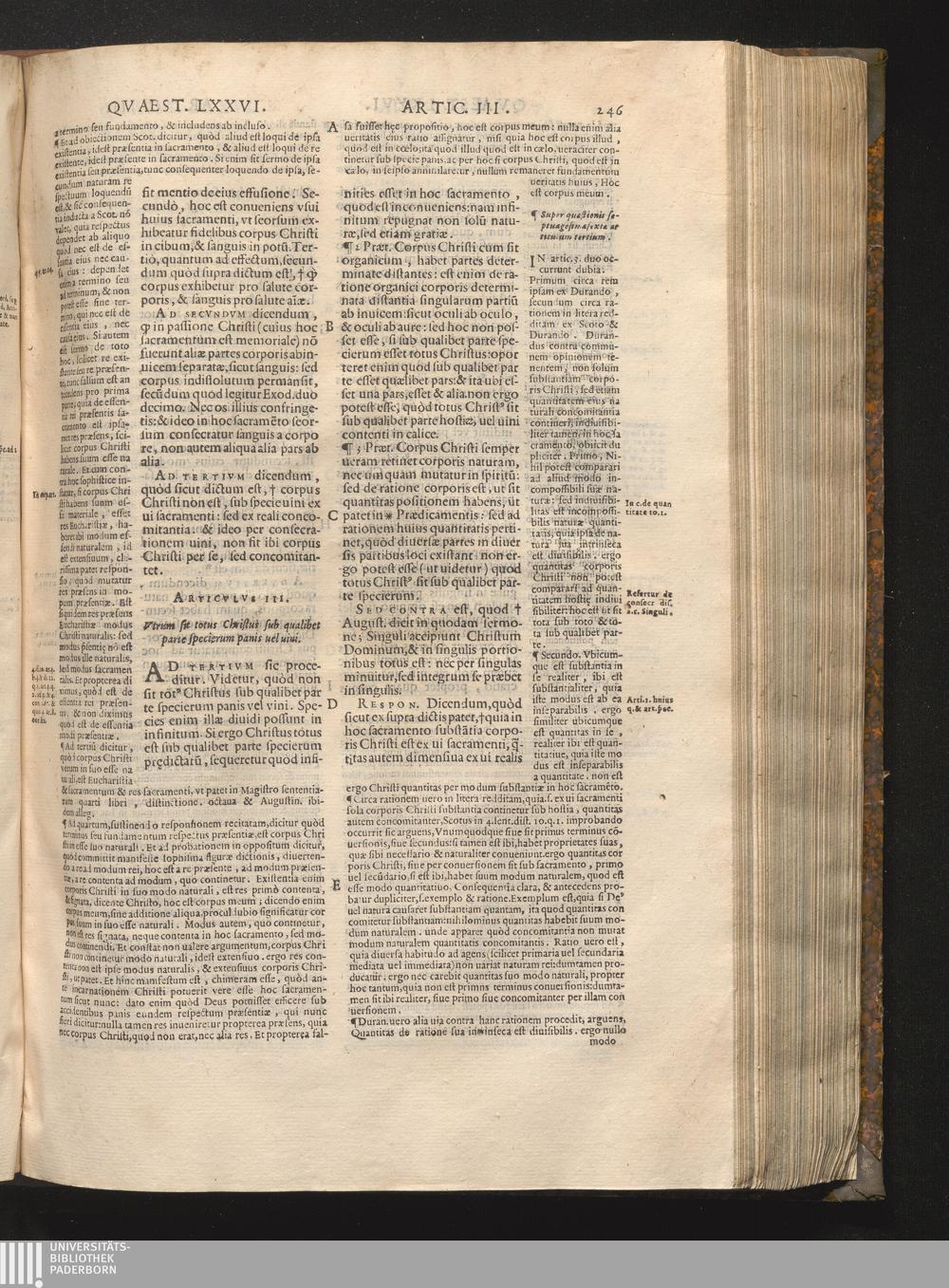 3. Vtrum totus Christus sit sub vtraque parte specierum.