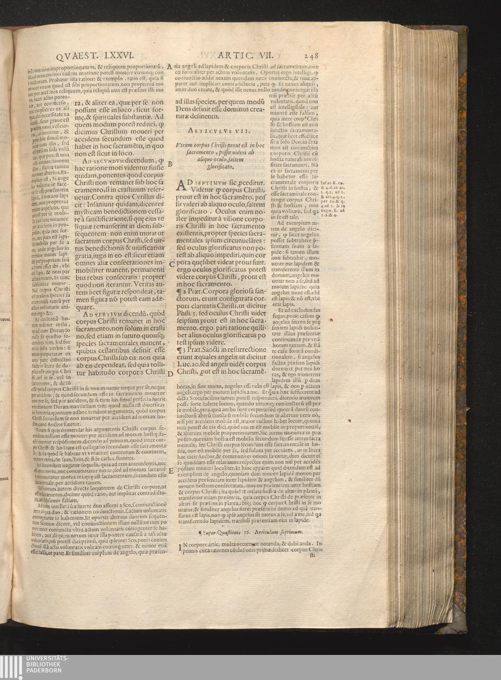 7. Vtrum corpus Christi sub hoc sacramento possit ab oculo aliquo videri.