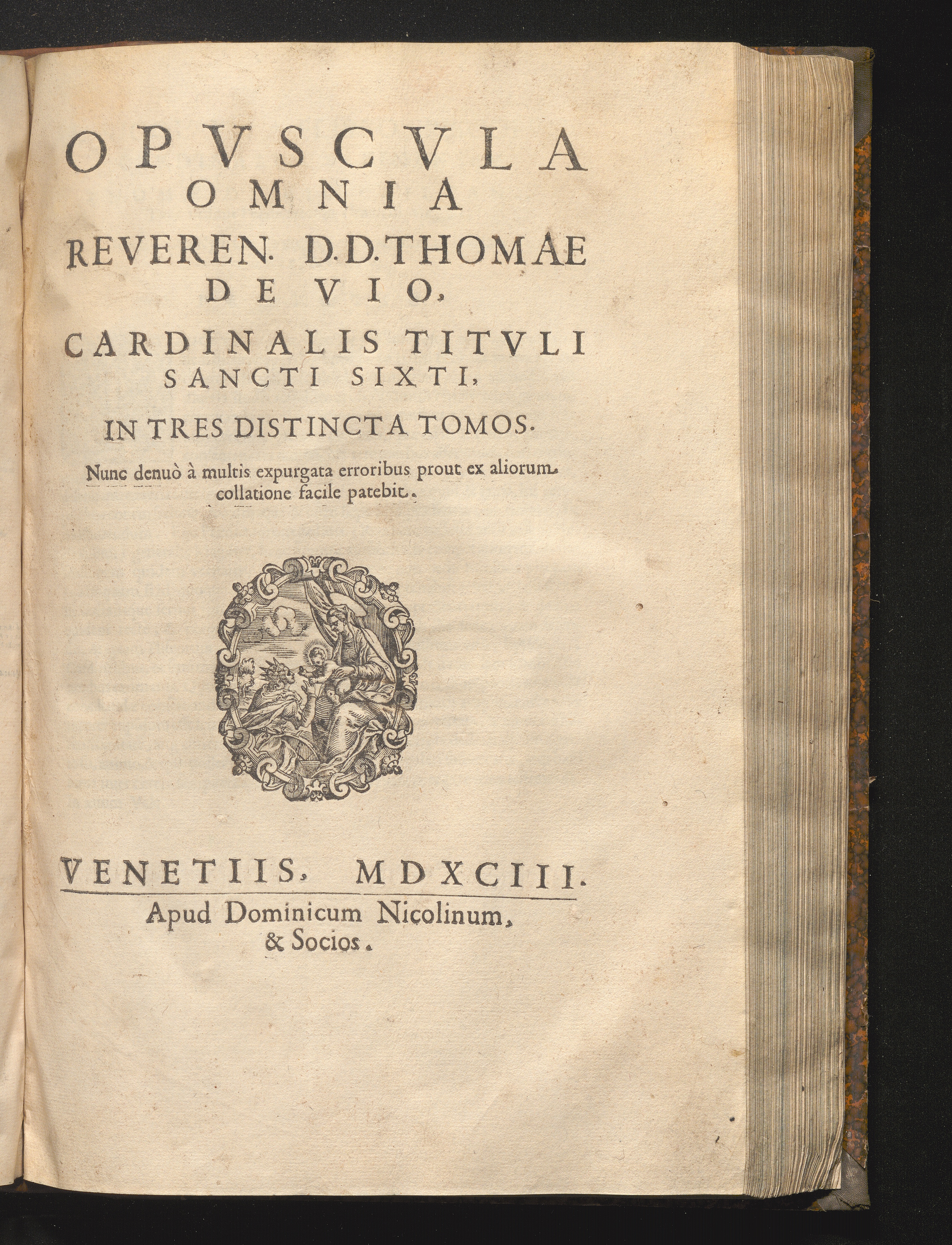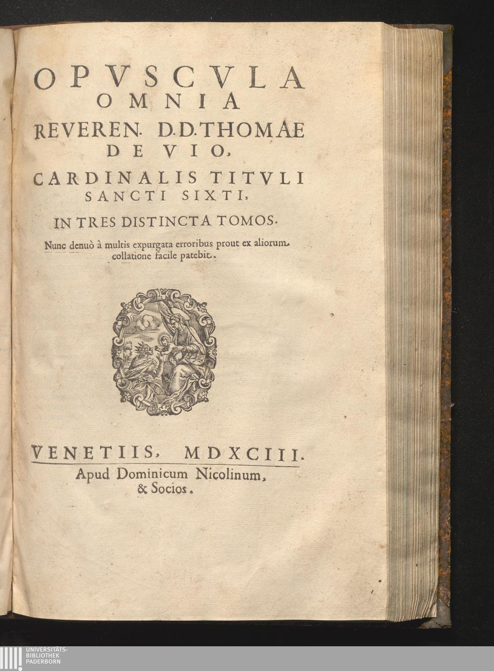 Tomvs Dvodecimvs (1593) Complectens Tertiam Partem Summæ Theologiæ. Cum Commentariis Reuerendiss. D. Thomæ de Vio Caietani Cardinalis S. Sixti, Et Opvscvlis Eivsdem In tres Tomos distinctis