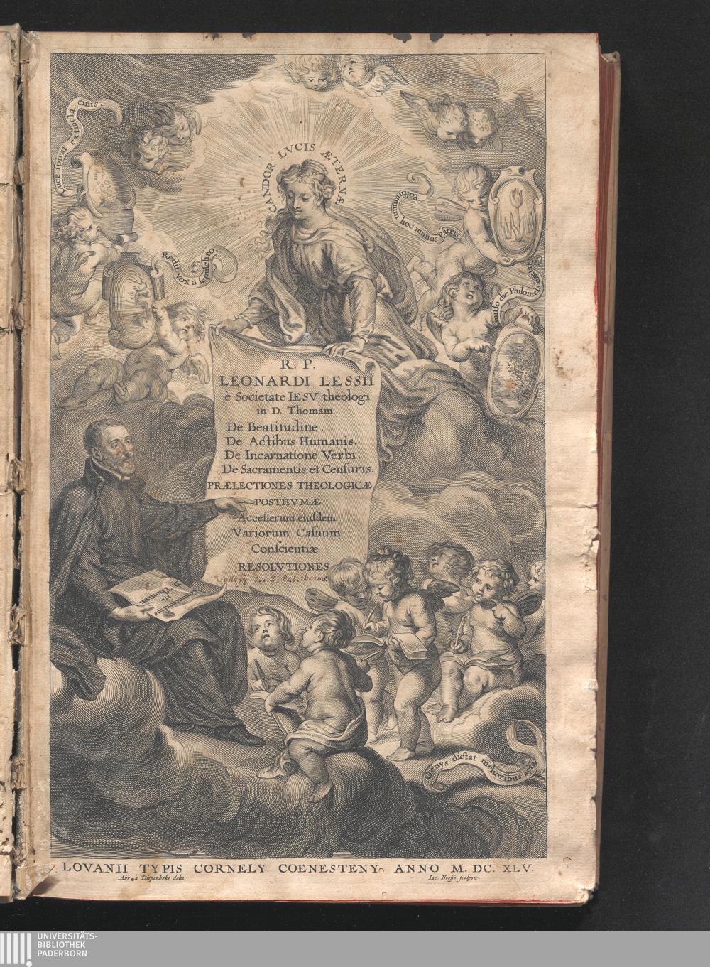 R.P. Leonardi Lessii E Societate Iesv Theologi. In D. Thomam De Beatitvdine. De Actibvs Hvmanis. De Incarnatione Verbi. De Sacramentis Et Censvris. Prælectiones Theologicæ Posthvmæ : Olim In Academia Lovaniensi Ab Anno M. D. LXXXV. iteratò propositæ. Et tam in vita, quàm à morte Auctoris plurimorum votis ad prælum expetitæ