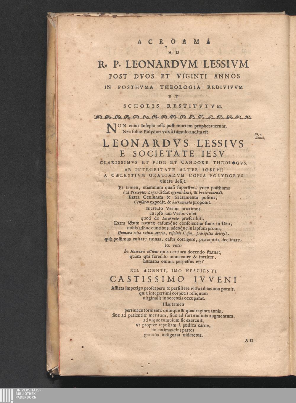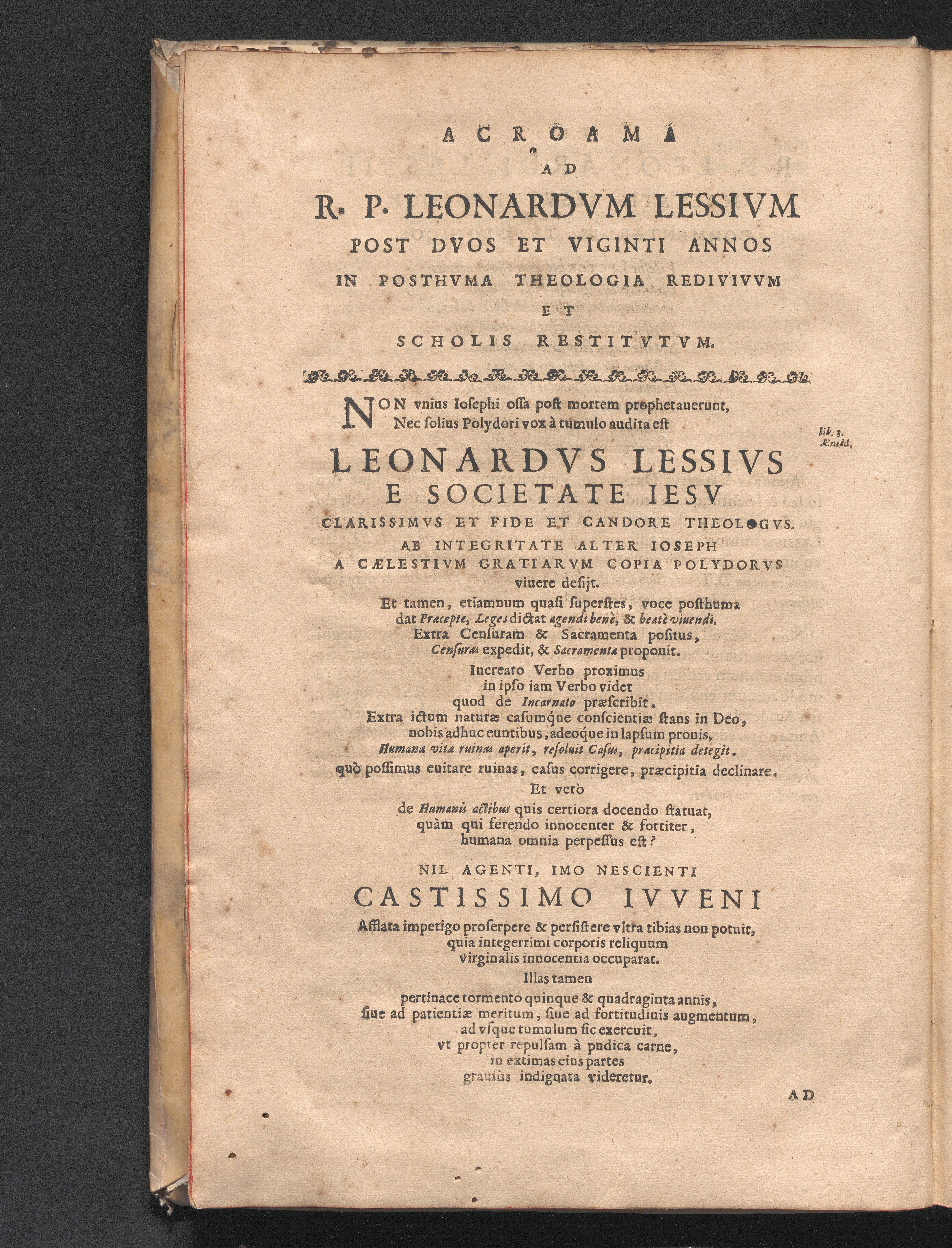 R.P. Leonardi Lessii E Societate Iesv Theologi. In D. Thomam De Beatitvdine. De Actibvs Hvmanis. De Incarnatione Verbi. De Sacramentis Et Censvris. Prælectiones Theologicæ Posthvmæ : Olim In Academia Lovaniensi Ab Anno M. D. LXXXV. iteratò propositæ. Et tam in vita, quàm à morte Auctoris plurimorum votis ad prælum expetitæ