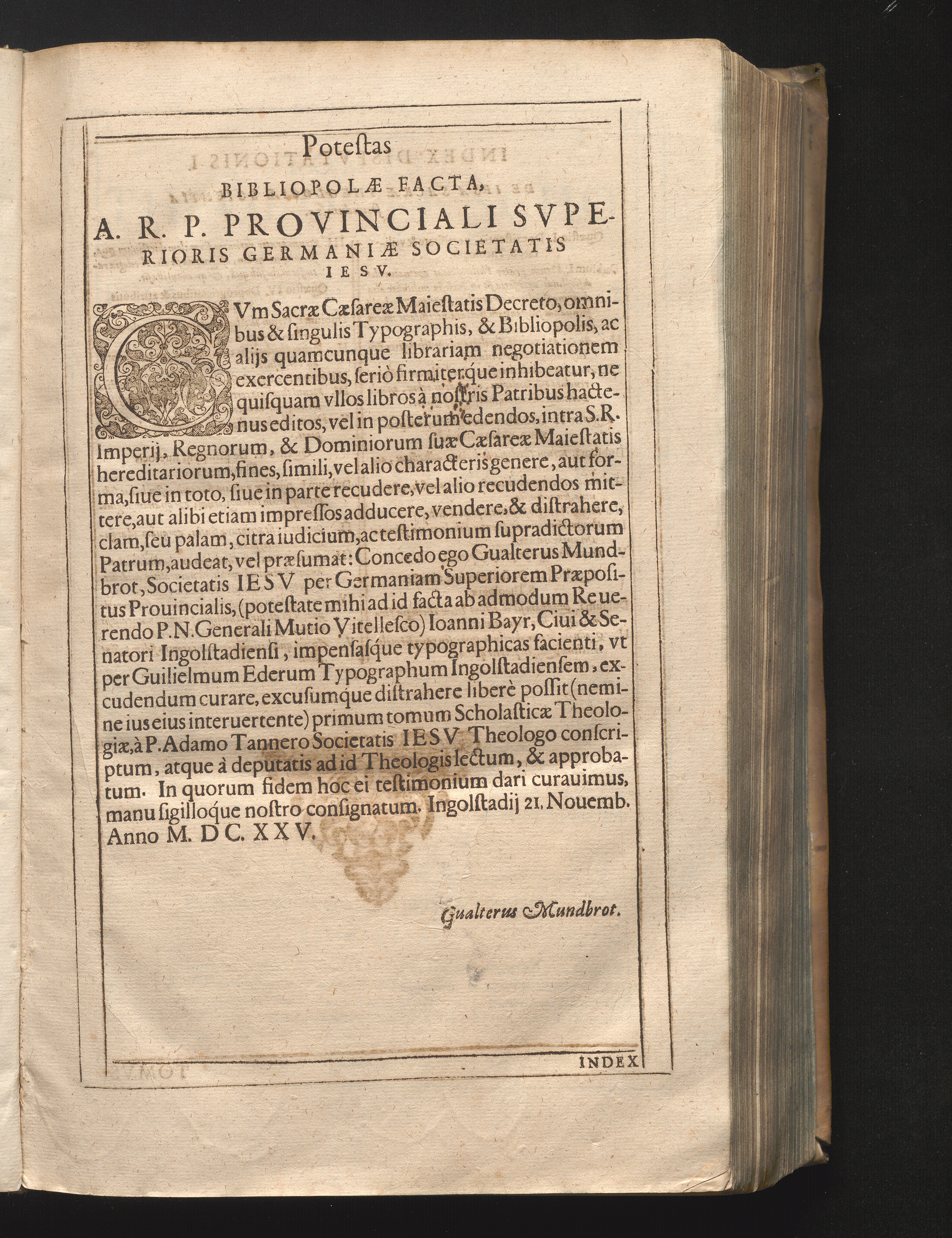 Potestas Bibliopolæ Facta, A. R. P. Provinciali Svperioris Germaniæ Societatis I[...]