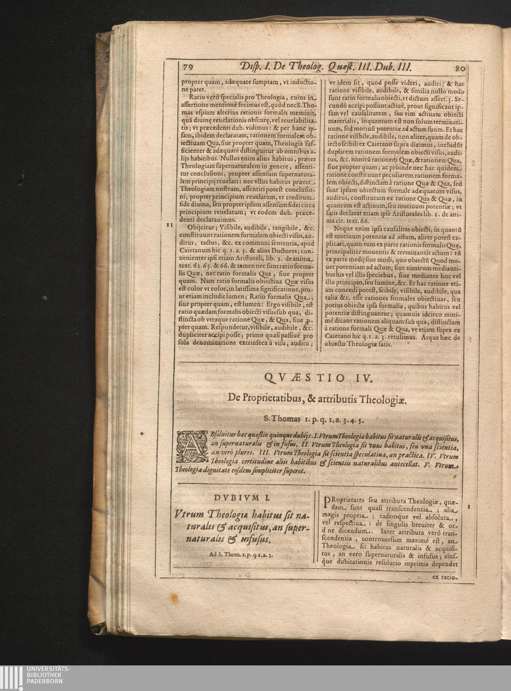 Quæstio IV. De Proprietatibus & attributis S. Theologiæ.