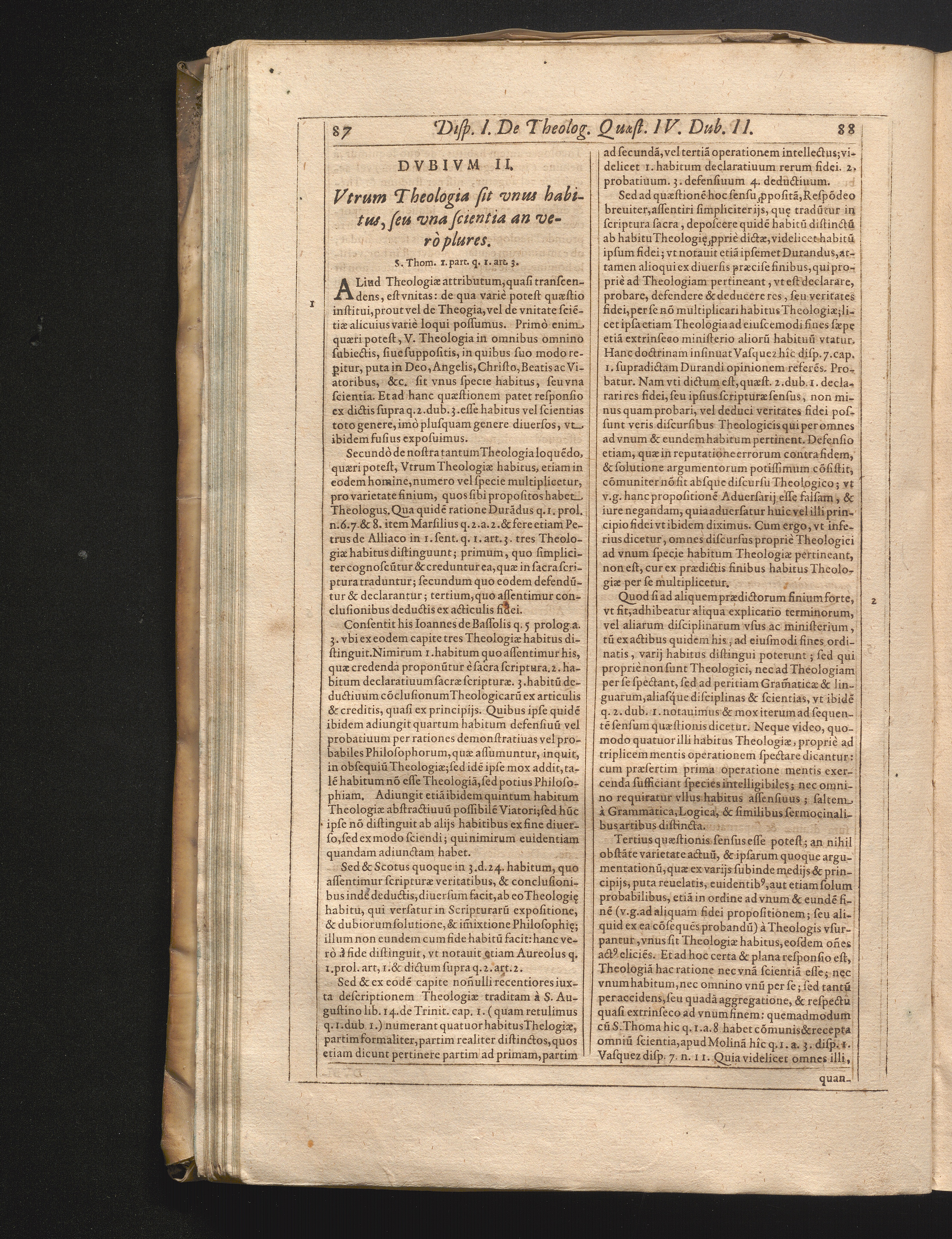 II. V. Theologia sit vnus habitus, seu vna scientia, an vero plures.