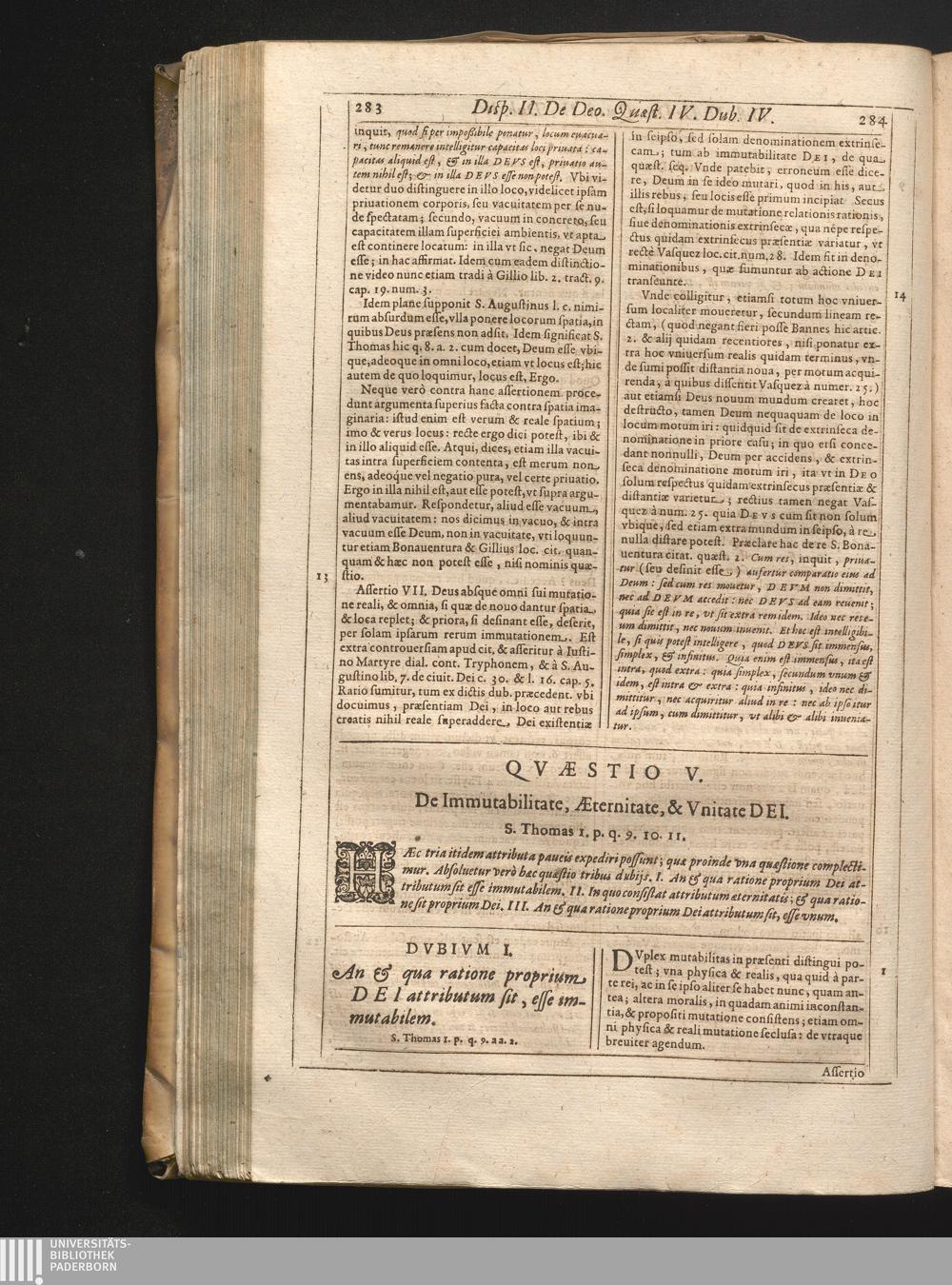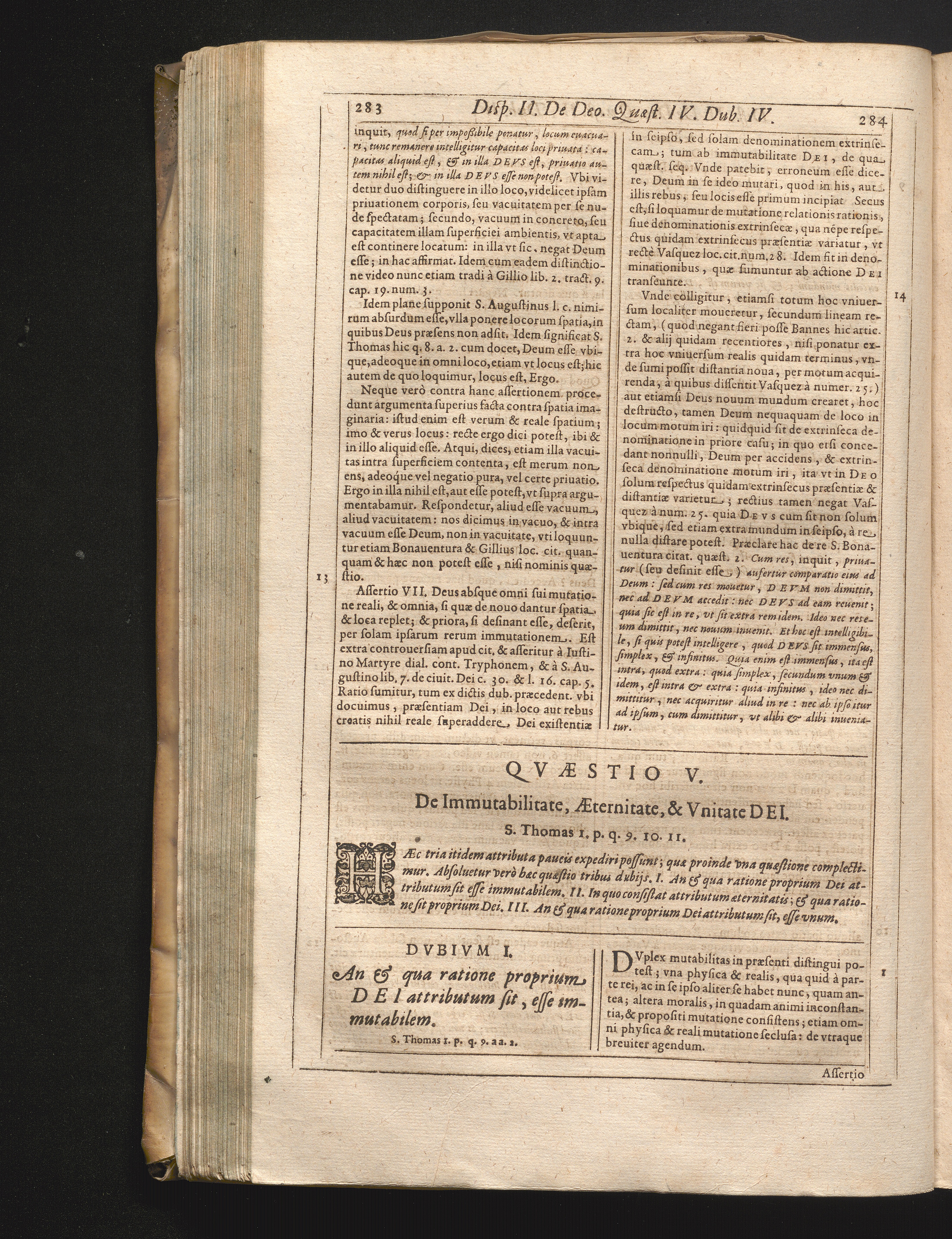 Quæstio V. De Immutabilitate, Æternitate, & vnitate Dei.