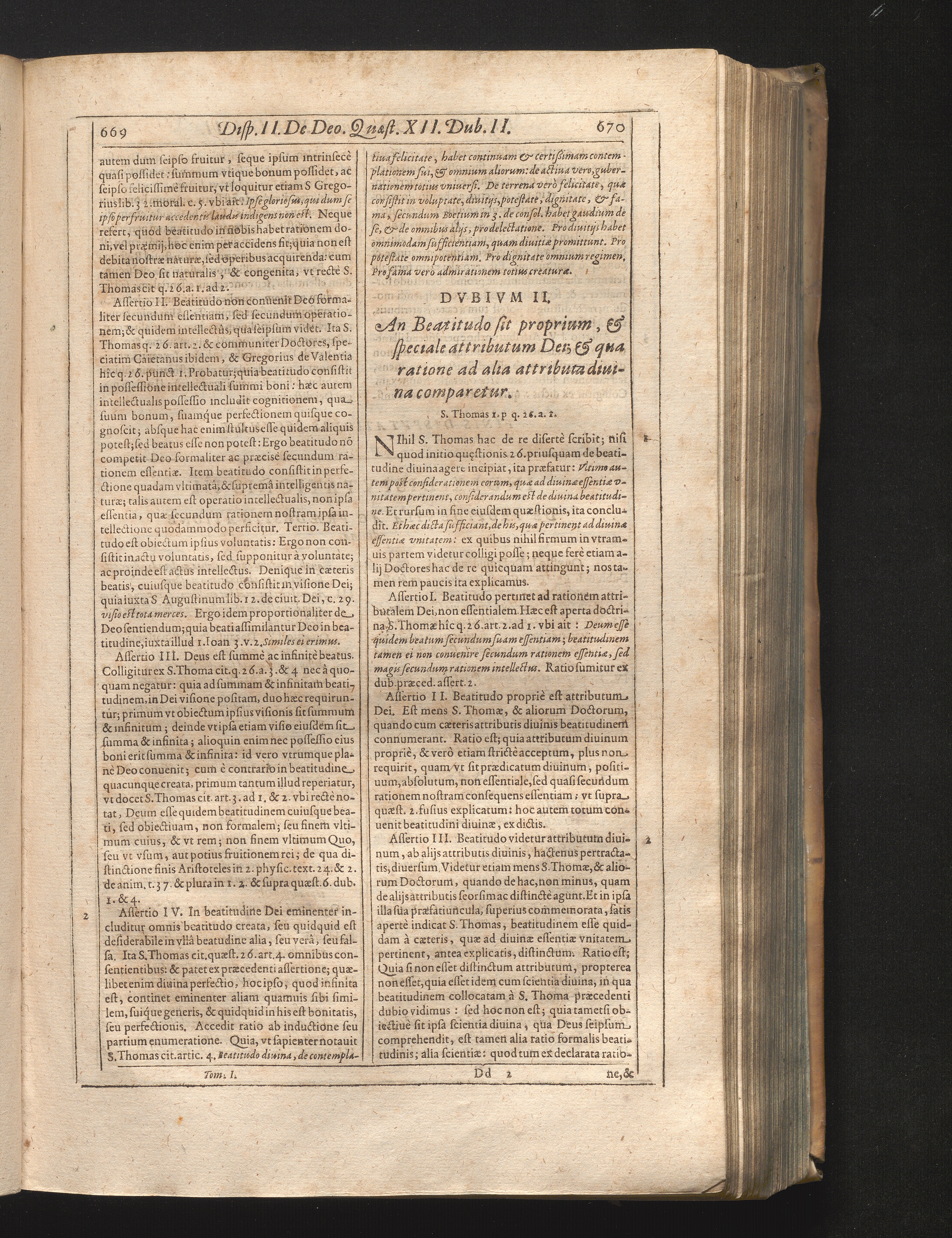 II. An beatitudo sit proprium & speciale attributum Dei, & quaratione ad alia diuina[...]
