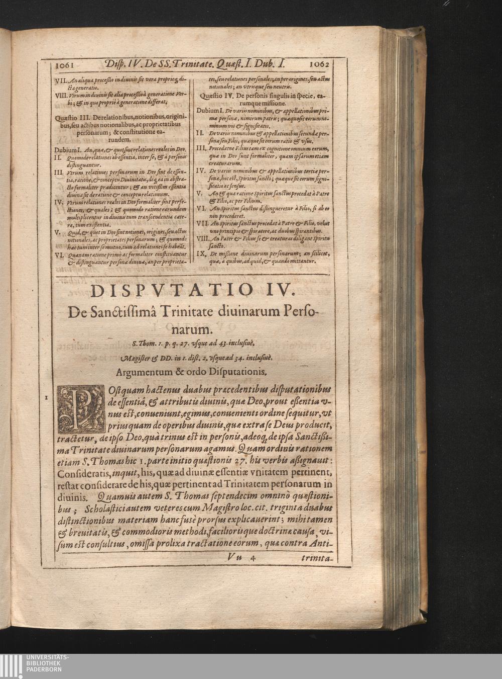 Dispvtatio IV. De Sanctissima Trinitate diuinarum Personarum.