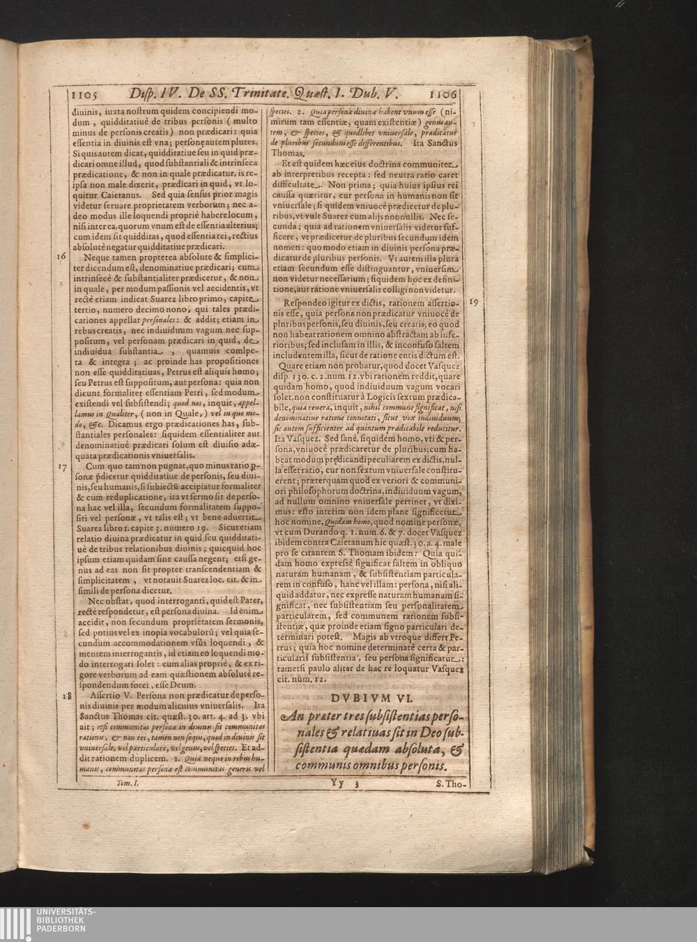 VI. An præter tres subsistentias & hypostases personales sit in Deo subsistentia[...]