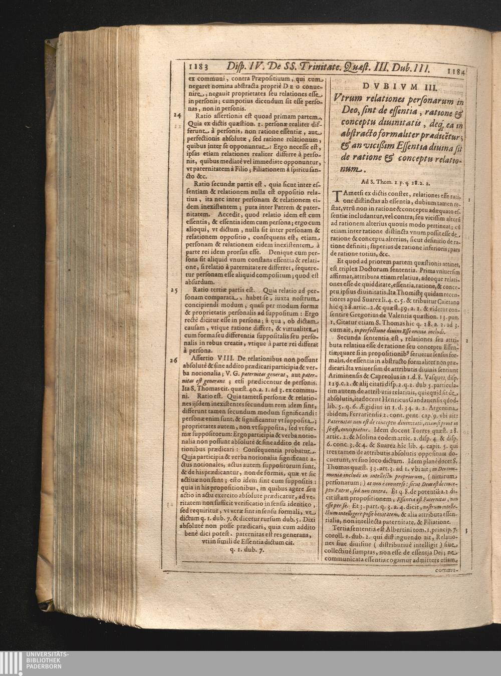 III. Vtrum relationes personarum in Deo sint de effentia, ratione & conceptu diuinitatis,[...]