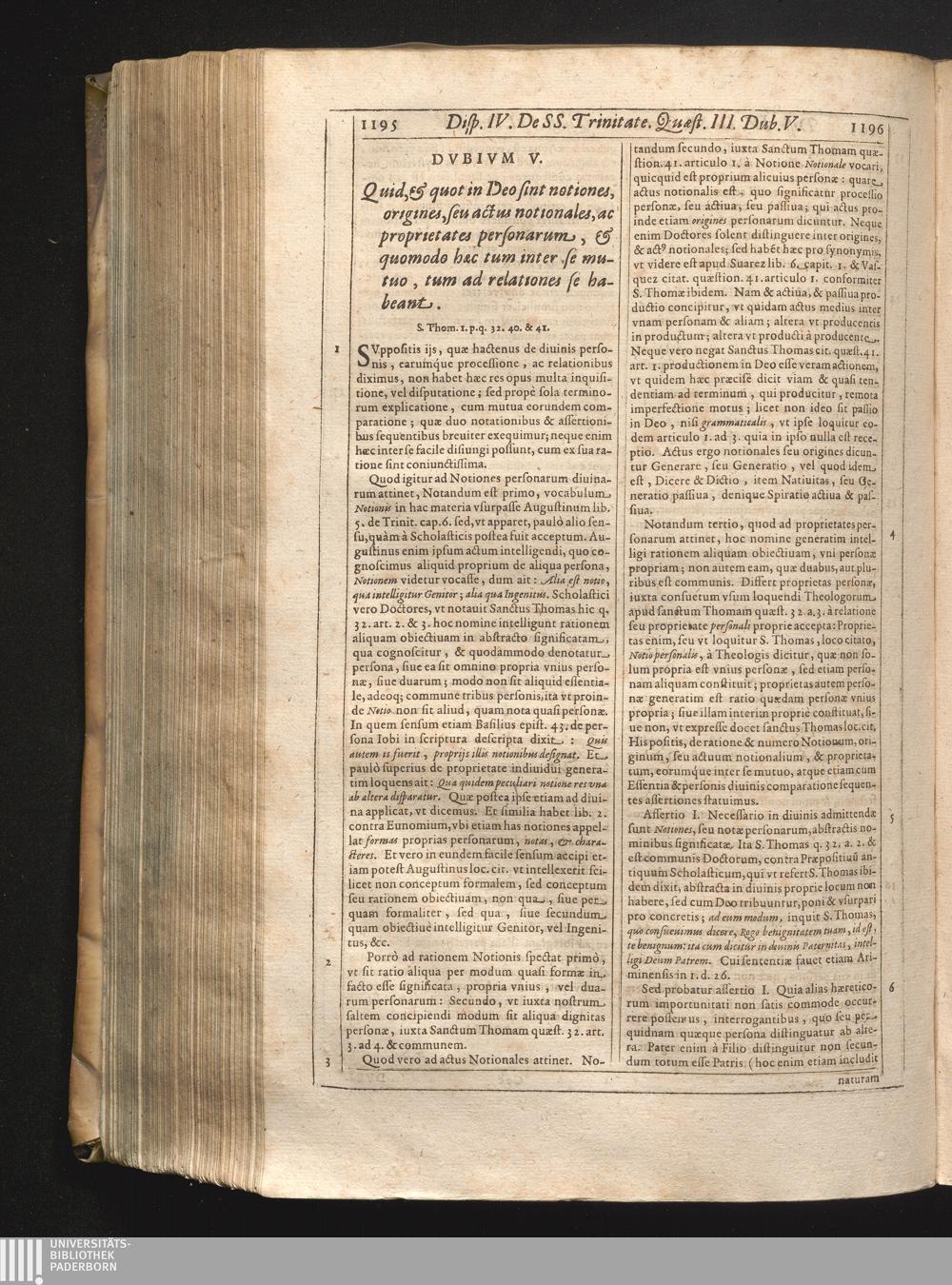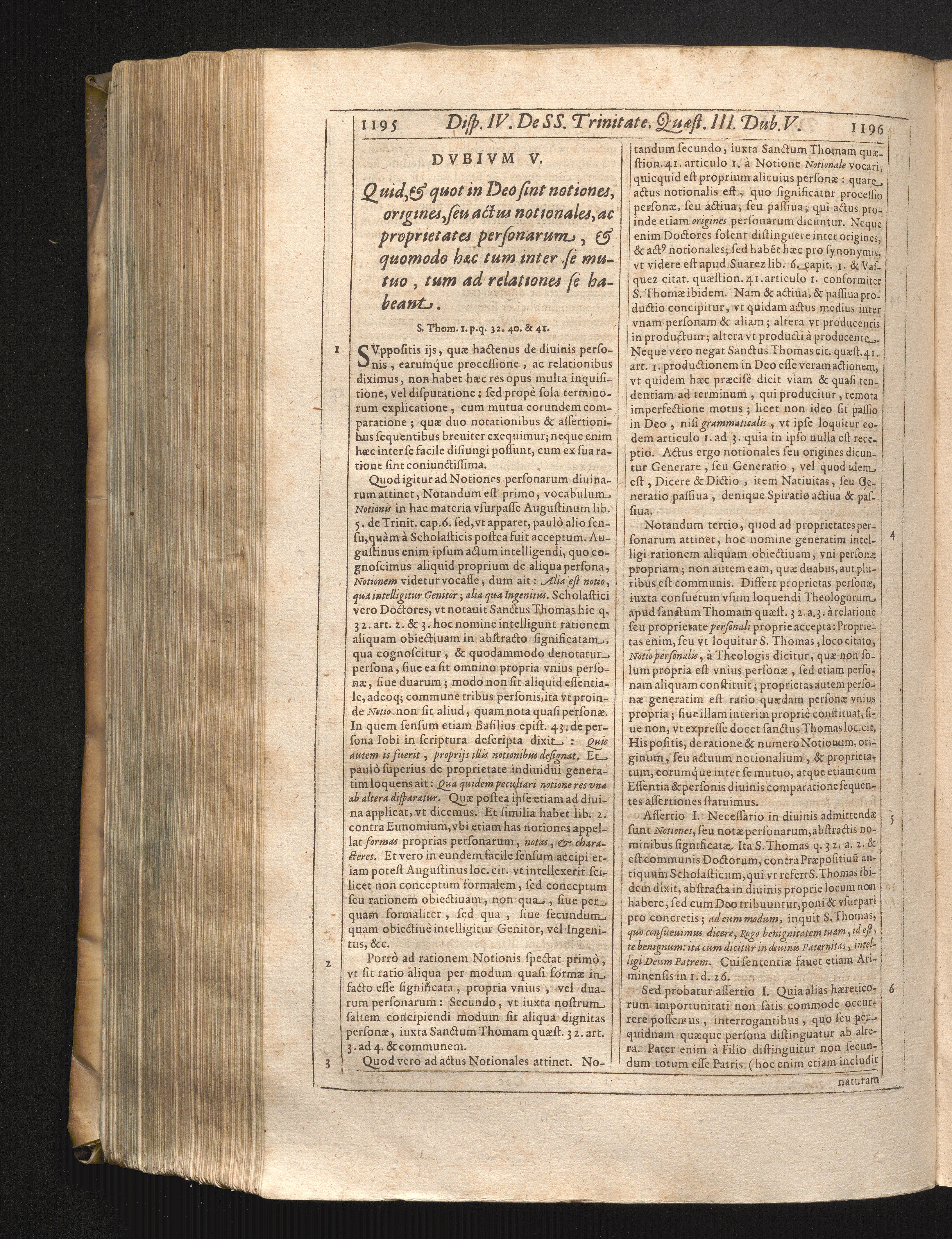 V. Quid, & quot in Deo sint notiones, origines seu actus notionales ac proprietates[...]