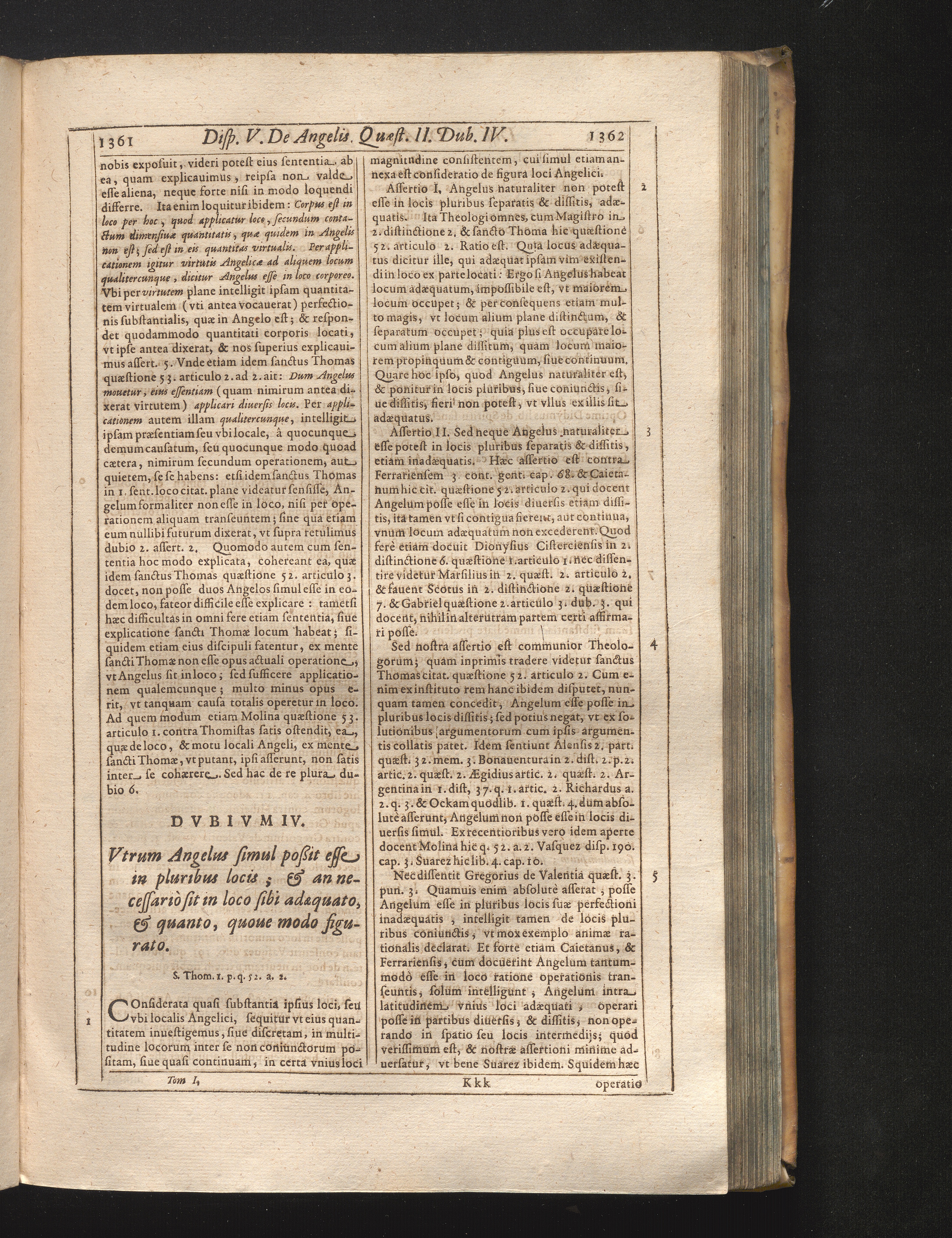 IV. Vtrum Angelus simul possit esse in pluribus locis, an potius neccessario sit[...]