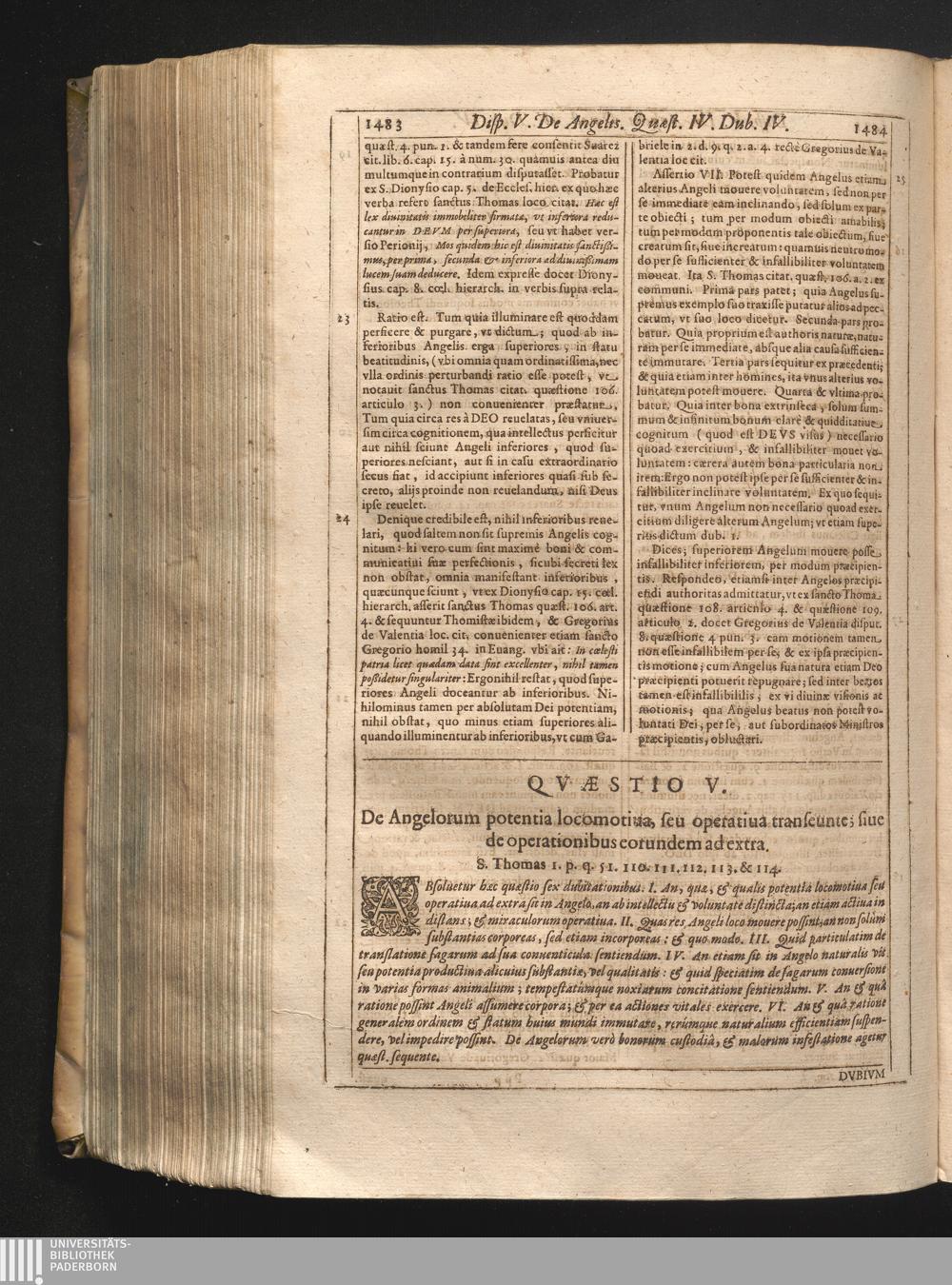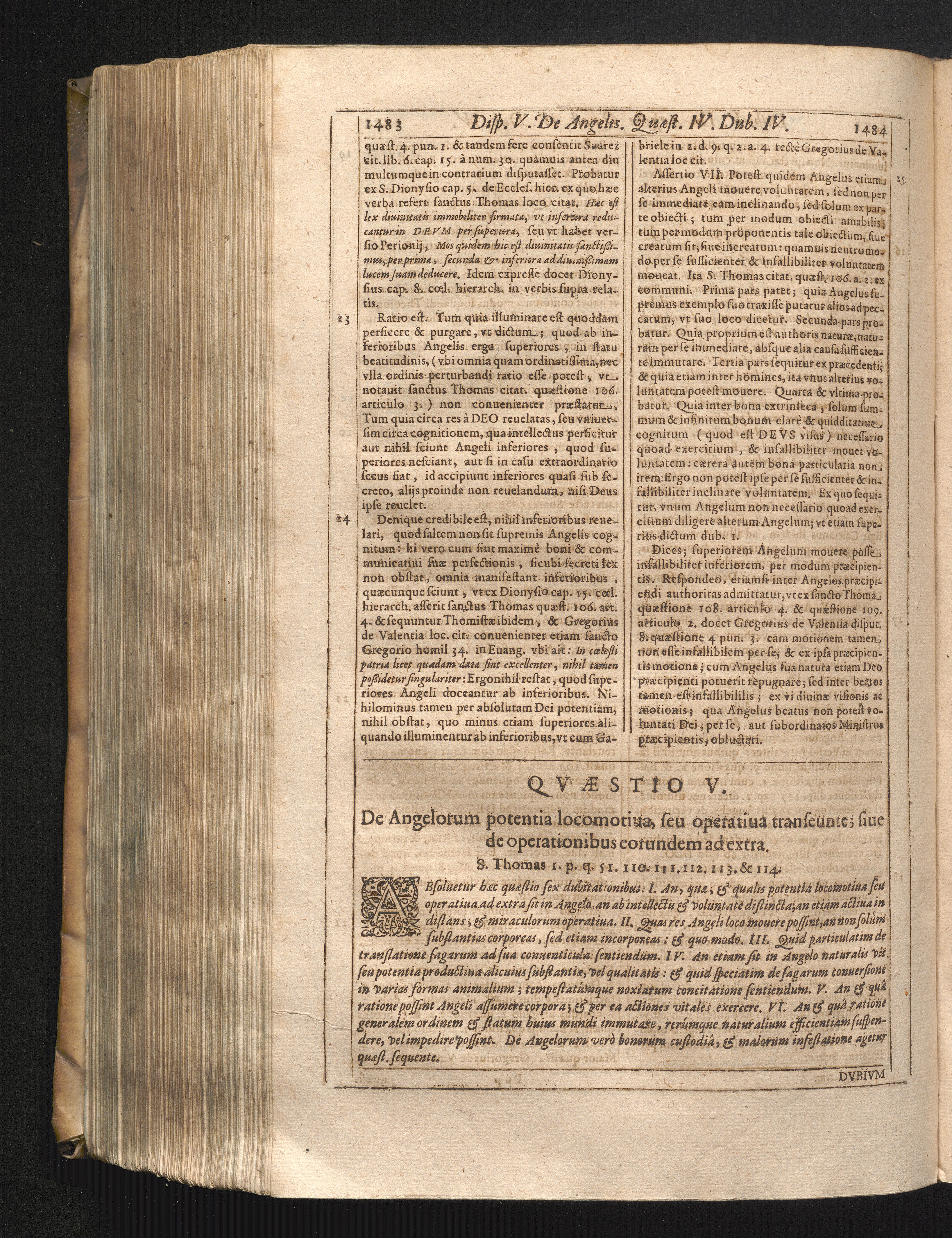 Quæstio V. De Angelorum potentia loco motiua, seu operatiua transeunte, siue de operationibus[...]
