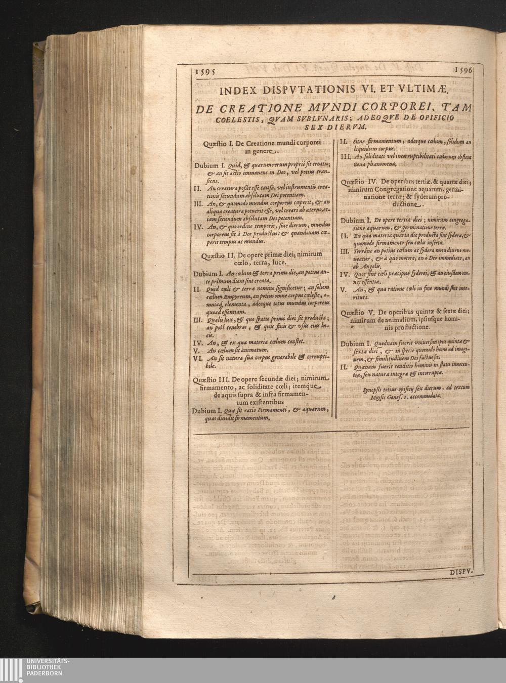 Index Dipvtationis VI. Et Vltimæ. De Creatione Mvndi Corporei, Tam Coelestis, Qvam[...]
