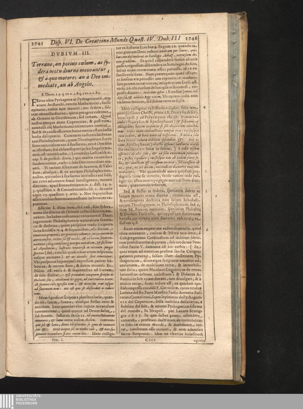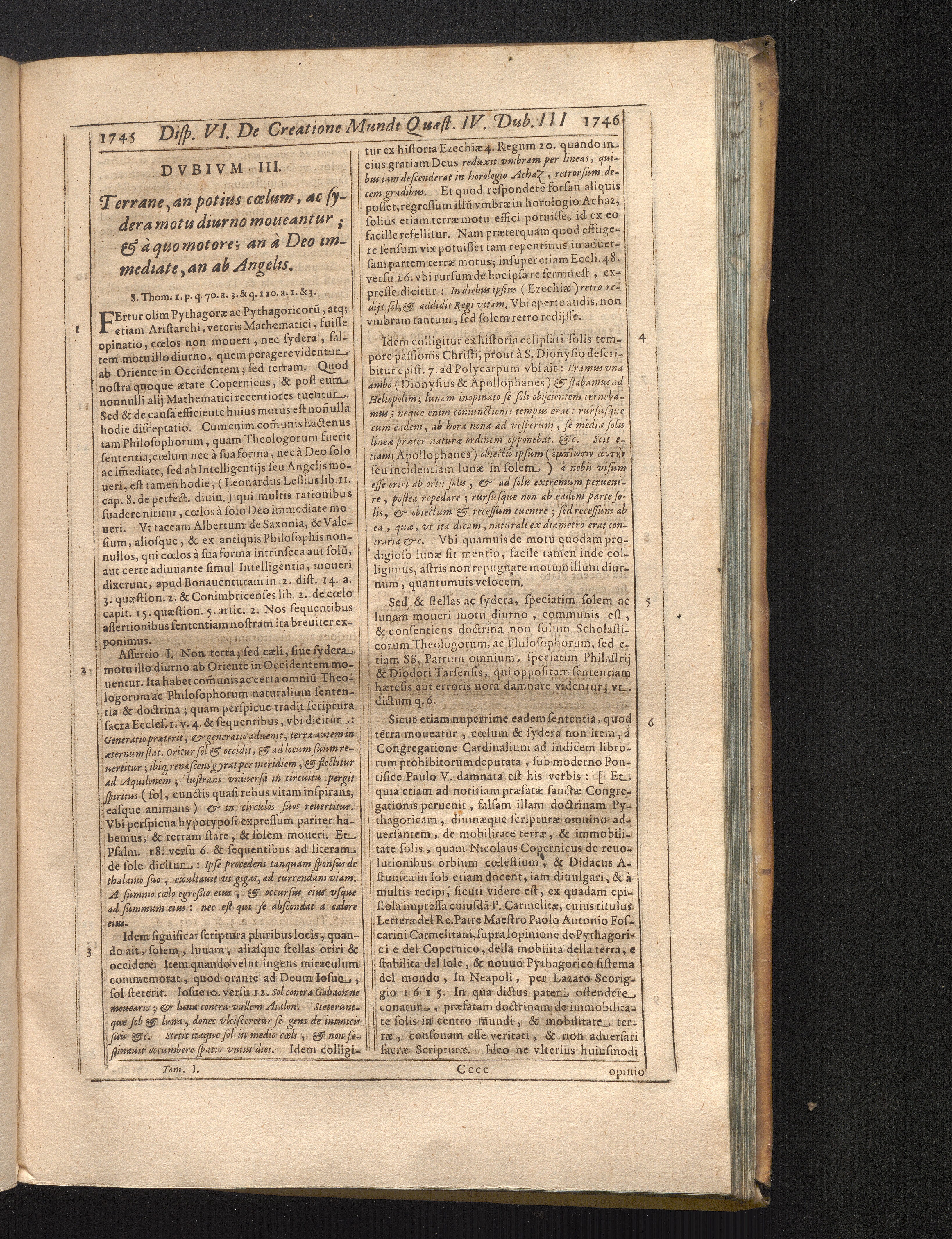 III. Terrane an potius cœlum ac sydera motu diurno moueantur, & à quo motore, an[...]