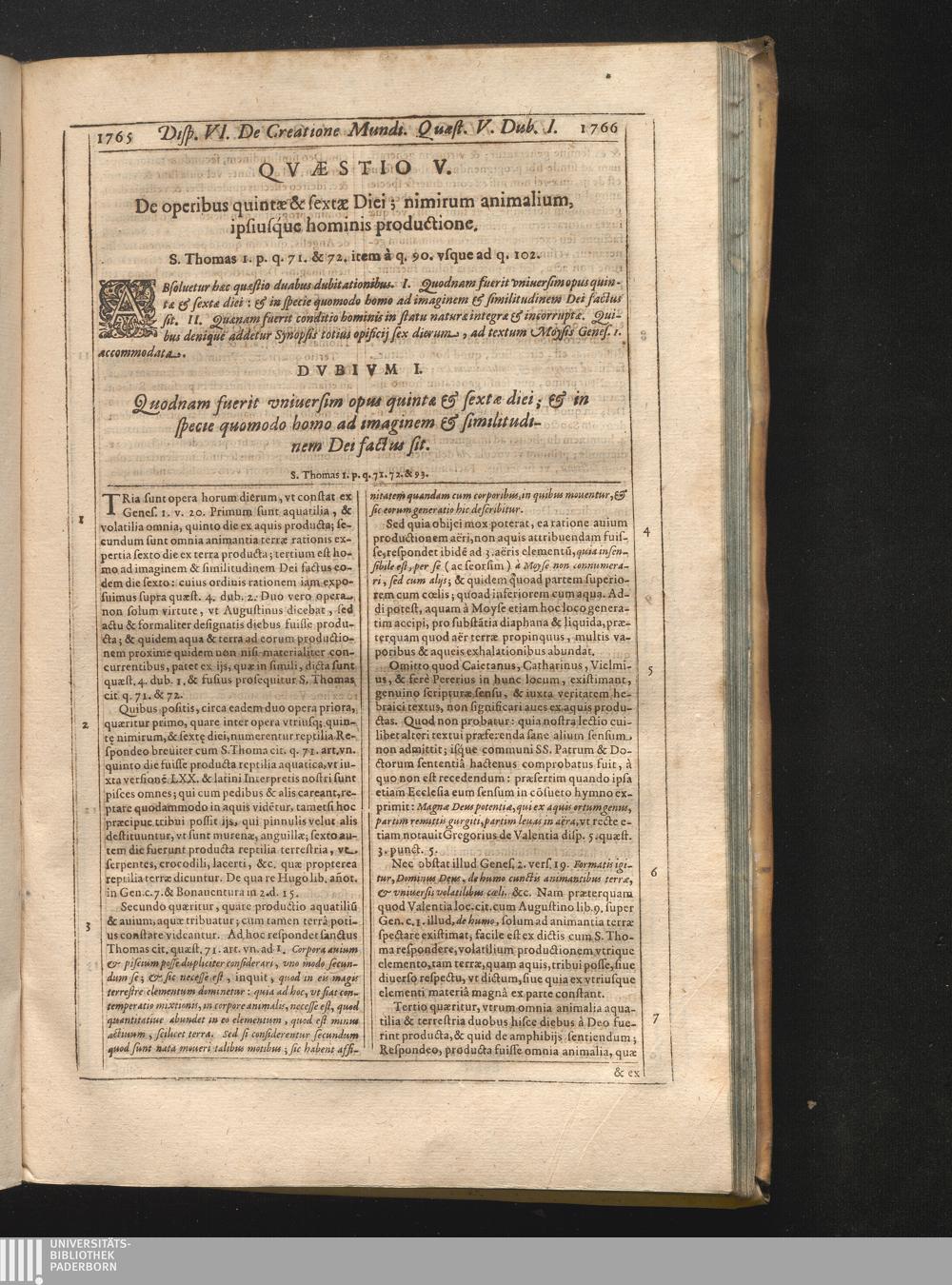 Quæstio V. De operibus quintæ & sextæ diei, nimirum animalium, ipsiusque hominis[...]