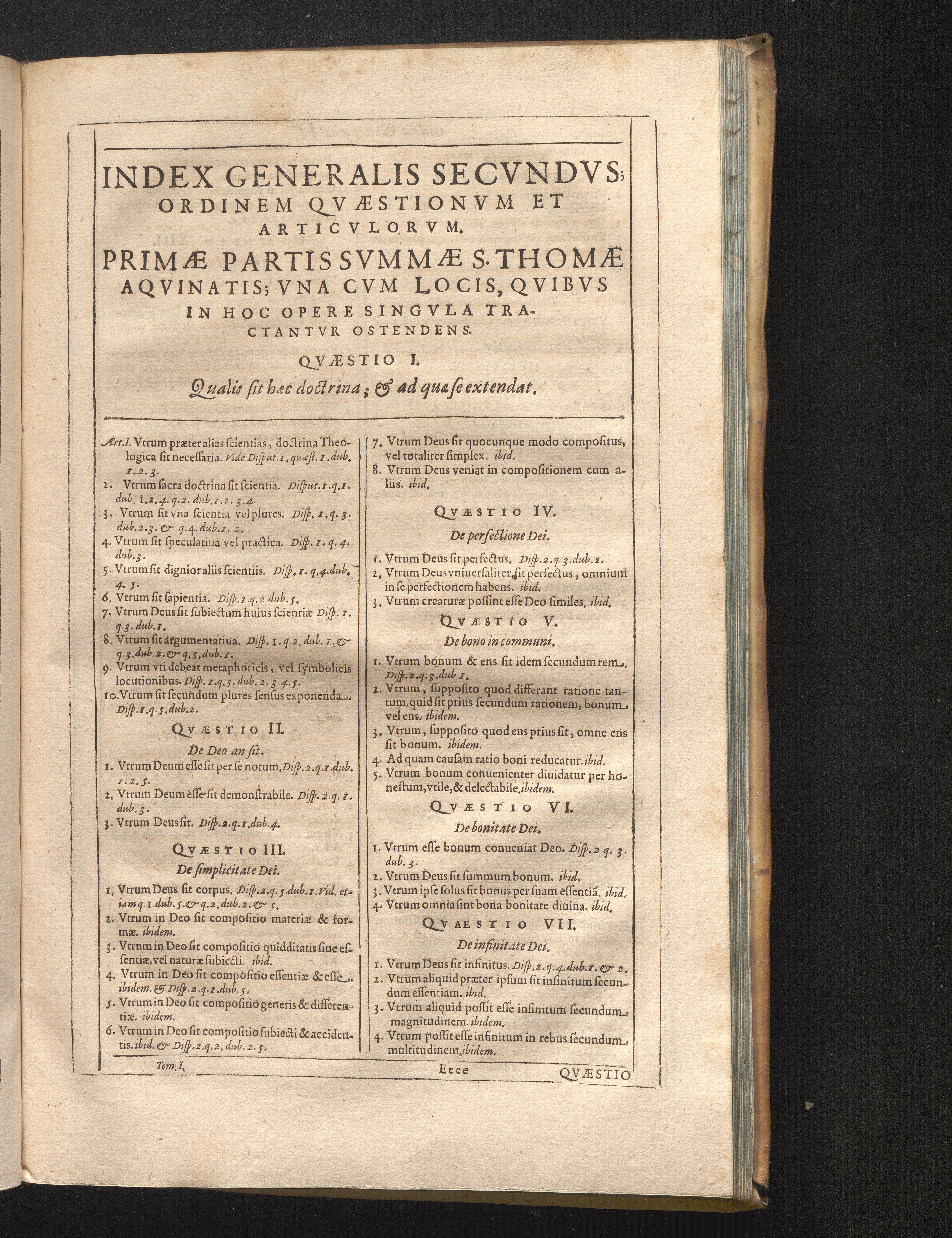 Index Generalis Secvndvs, Ordinem Qvæstionvm Et Articvlorvm.