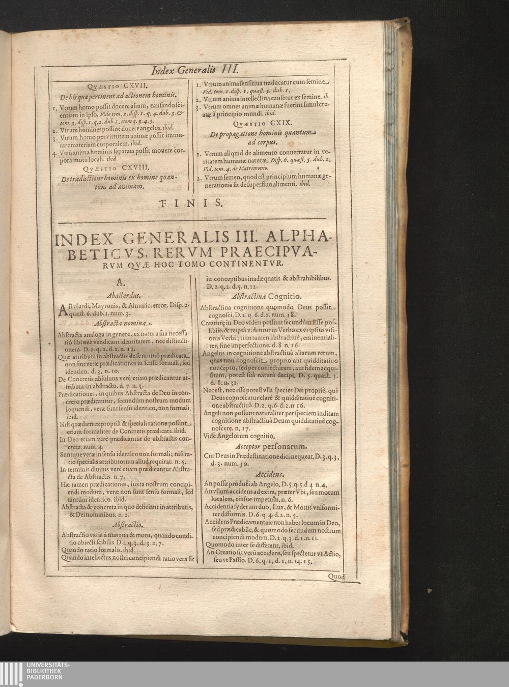 Index Generalis III. Alphabeticvs, Rervm Praecipvarvm Qvæ Hoc Tom Continentvr.