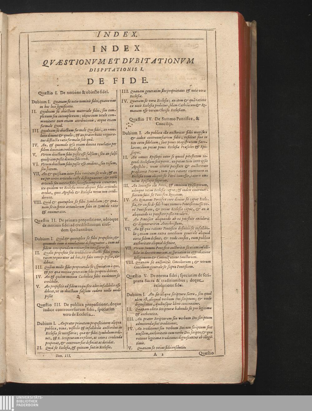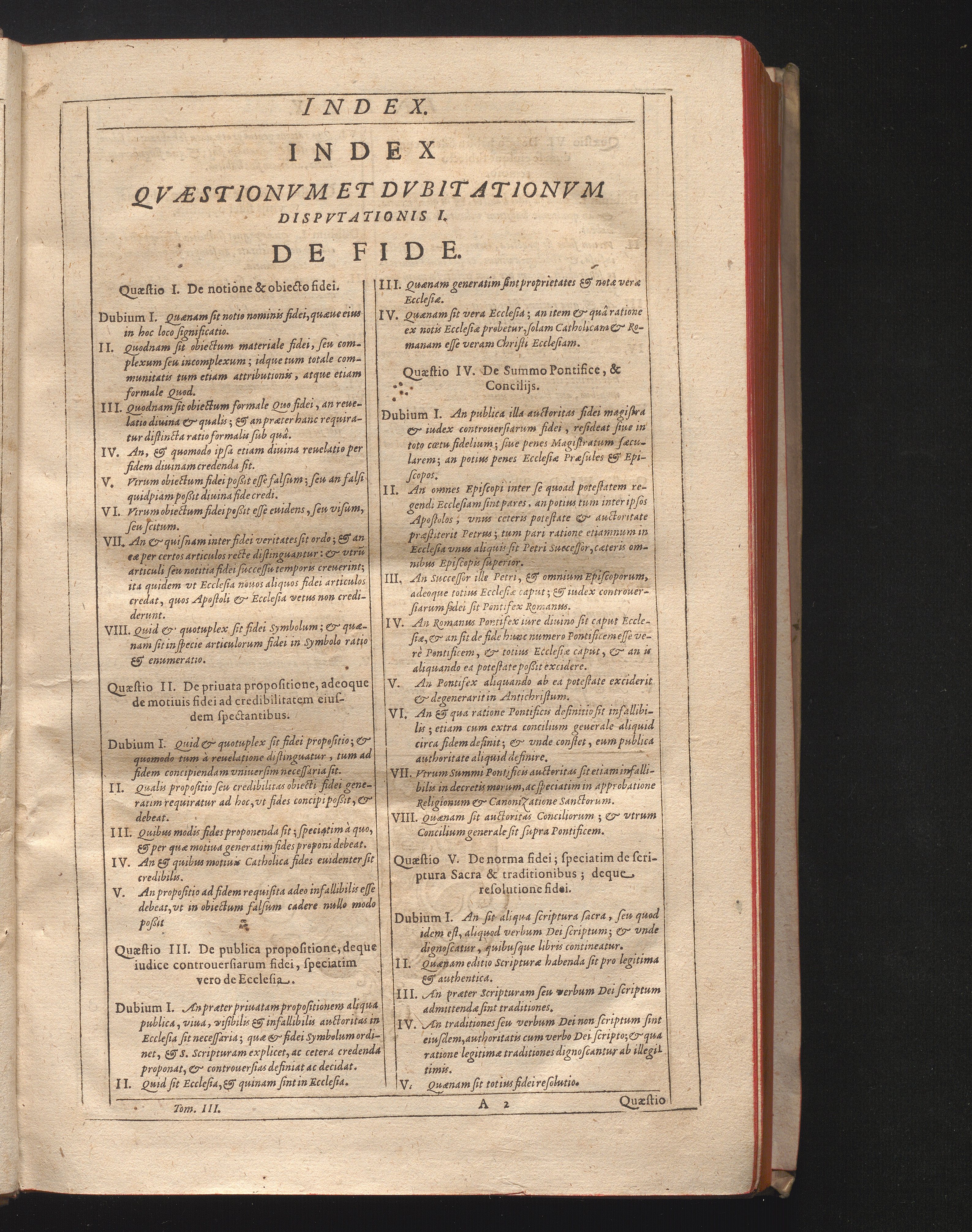 Index Qvæstionvm Et Dvbitationvm Diaspvtationis I.