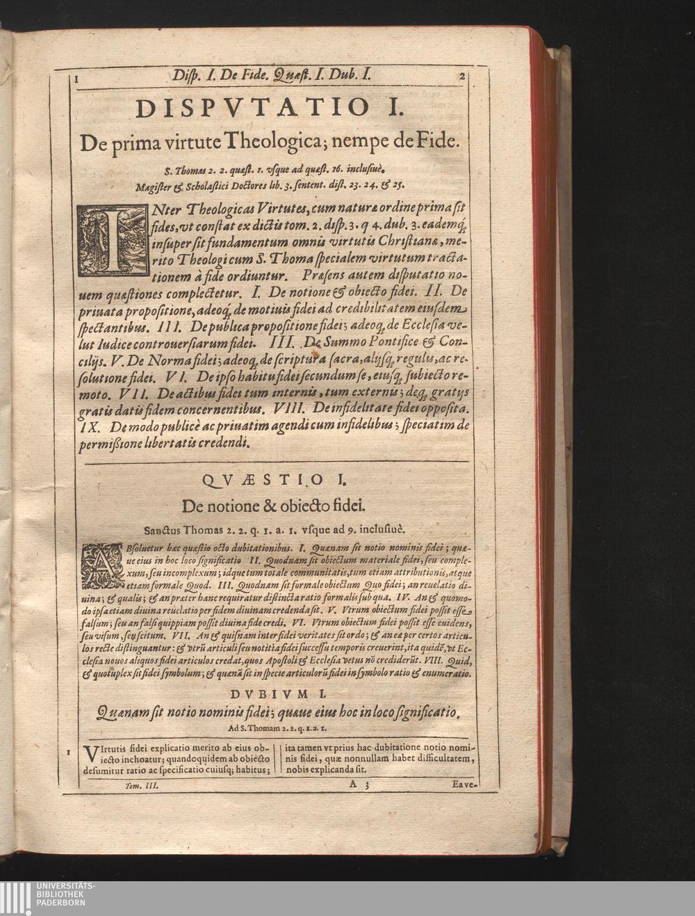 3 (1627) De Fide, Spe, Charitate, Ivstitia, Religione, caeterisq[ue] virtutibus [et] vitijs: ac varijs hominum statibus. Secvndae Secvundae S. Thomae Aqvinatis Respondens