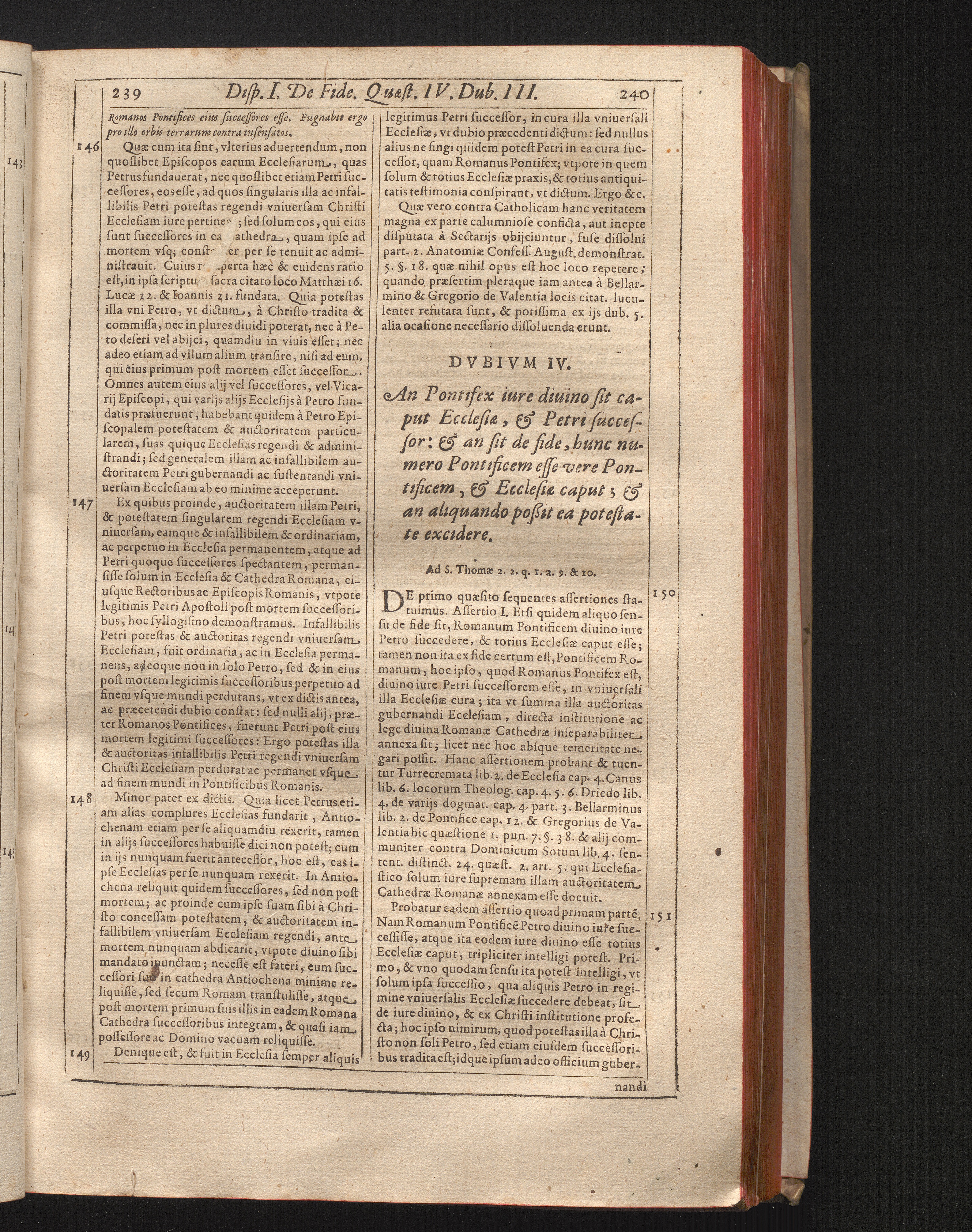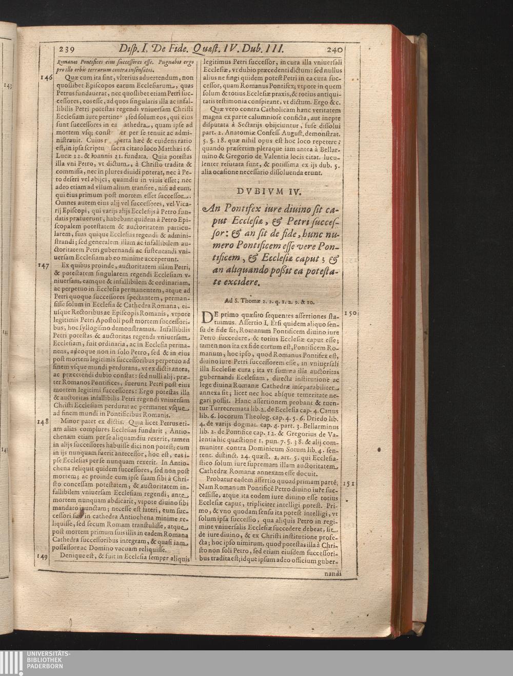 IV. An Romanus Pontifex iure diuino sit caput Ecclesiæ, & an sit de fide hunc numero[...]
