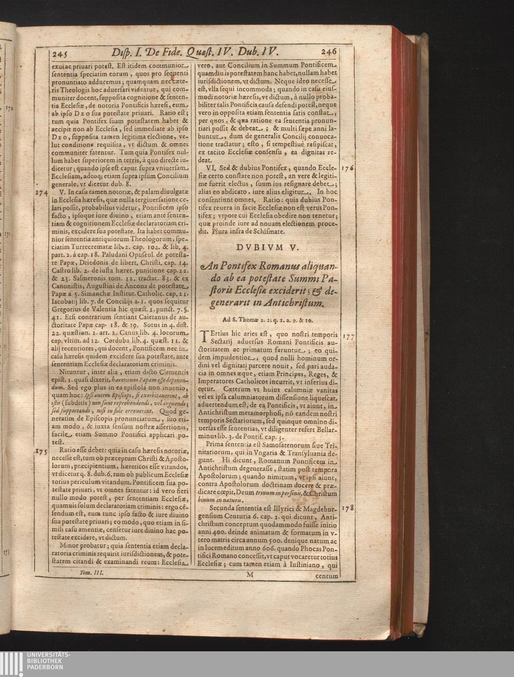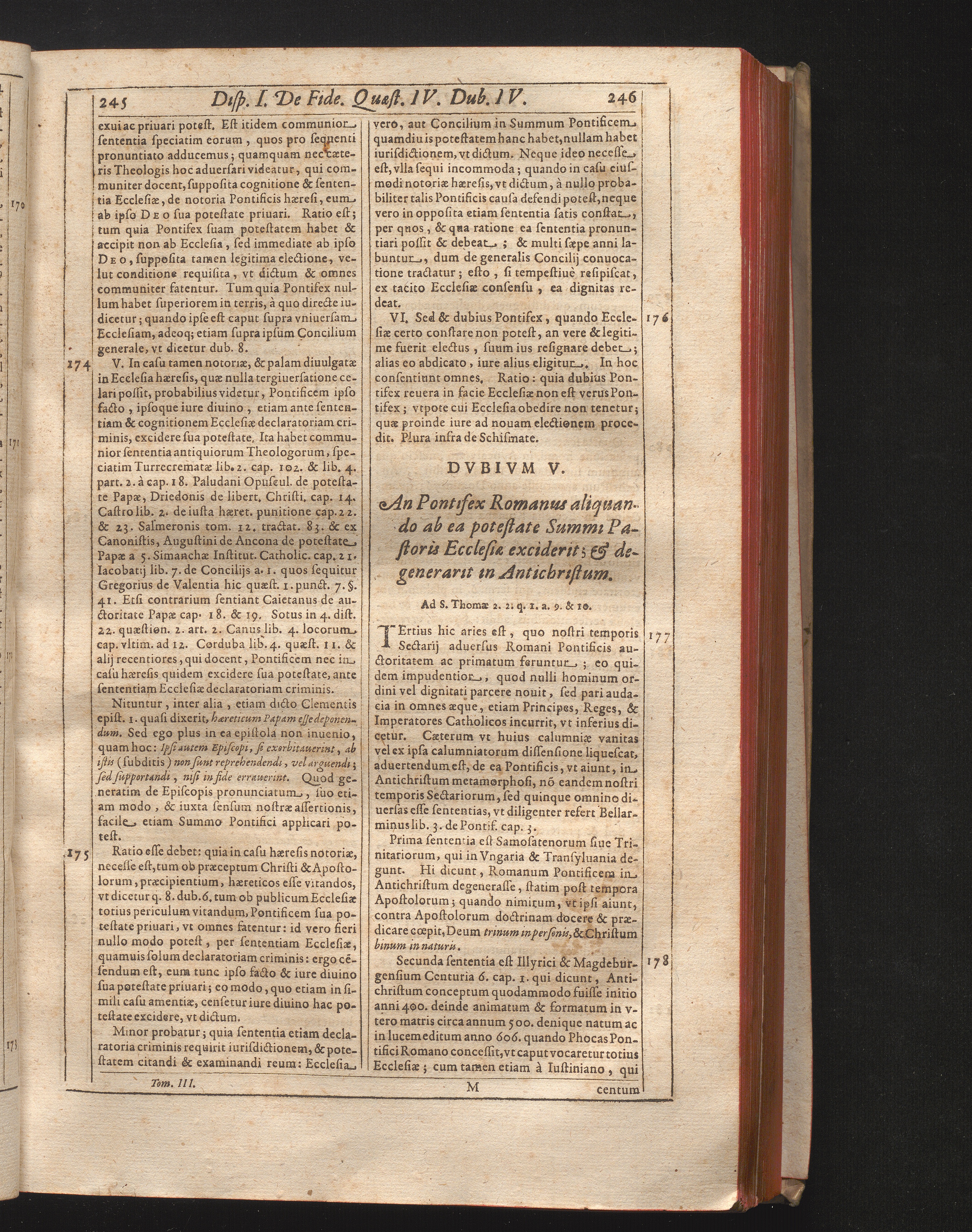 V. An Pontifex aliquando ab ea potestate exciderit & degenerarit in Antichristum[...]
