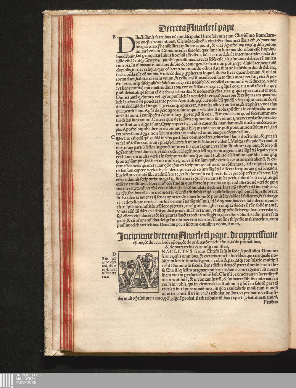 CONCILIO||RVM QVATVOR GENE=||ralium. Niceni. Constantinopolitani. Ephesini. et Calce=||donensis. Que diuus Gregorius magnus tanq[uam]|| quatuor Euangelia colit ac veneratur.|| : TOMVS PRIMVS.|| Quadraginta quoq[ue] septem Conciliorum prouincialium authenticorum.|| Decretorum etiam sexaginta nouem Pontificum Ab apostolis & eorundem canonibus,|| vsq[ue] ad Zachariam primum, Isidoro authore.|| Item Bulla Aurea Caroli IIII. Imperatoris, de electione Regis Romanorum.|| TOMVS SECVNDVS. ALI||ORVM ALIQVOT CONCILIORVM GENERALIVM.|| Practica quintæ synodi Constantinopolitanæ.|| Sexta synodus Constantinopolitana.|| Acta concilij Constantiensis.|| Decreta concilij Basiliensis.|| Approbatio actorum concilij Basiliensis per N. P.|| Confirmatio constitutionum Friderici & Carolinæ.|| / [Hrsg.: Iacobus Merlinus]