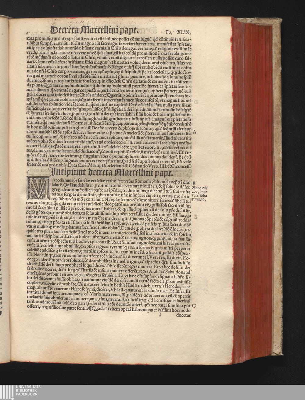 CONCILIO||RVM QVATVOR GENE=||ralium. Niceni. Constantinopolitani. Ephesini. et Calce=||donensis. Que diuus Gregorius magnus tanq[uam]|| quatuor Euangelia colit ac veneratur.|| : TOMVS PRIMVS.|| Quadraginta quoq[ue] septem Conciliorum prouincialium authenticorum.|| Decretorum etiam sexaginta nouem Pontificum Ab apostolis & eorundem canonibus,|| vsq[ue] ad Zachariam primum, Isidoro authore.|| Item Bulla Aurea Caroli IIII. Imperatoris, de electione Regis Romanorum.|| TOMVS SECVNDVS. ALI||ORVM ALIQVOT CONCILIORVM GENERALIVM.|| Practica quintæ synodi Constantinopolitanæ.|| Sexta synodus Constantinopolitana.|| Acta concilij Constantiensis.|| Decreta concilij Basiliensis.|| Approbatio actorum concilij Basiliensis per N. P.|| Confirmatio constitutionum Friderici & Carolinæ.|| / [Hrsg.: Iacobus Merlinus]