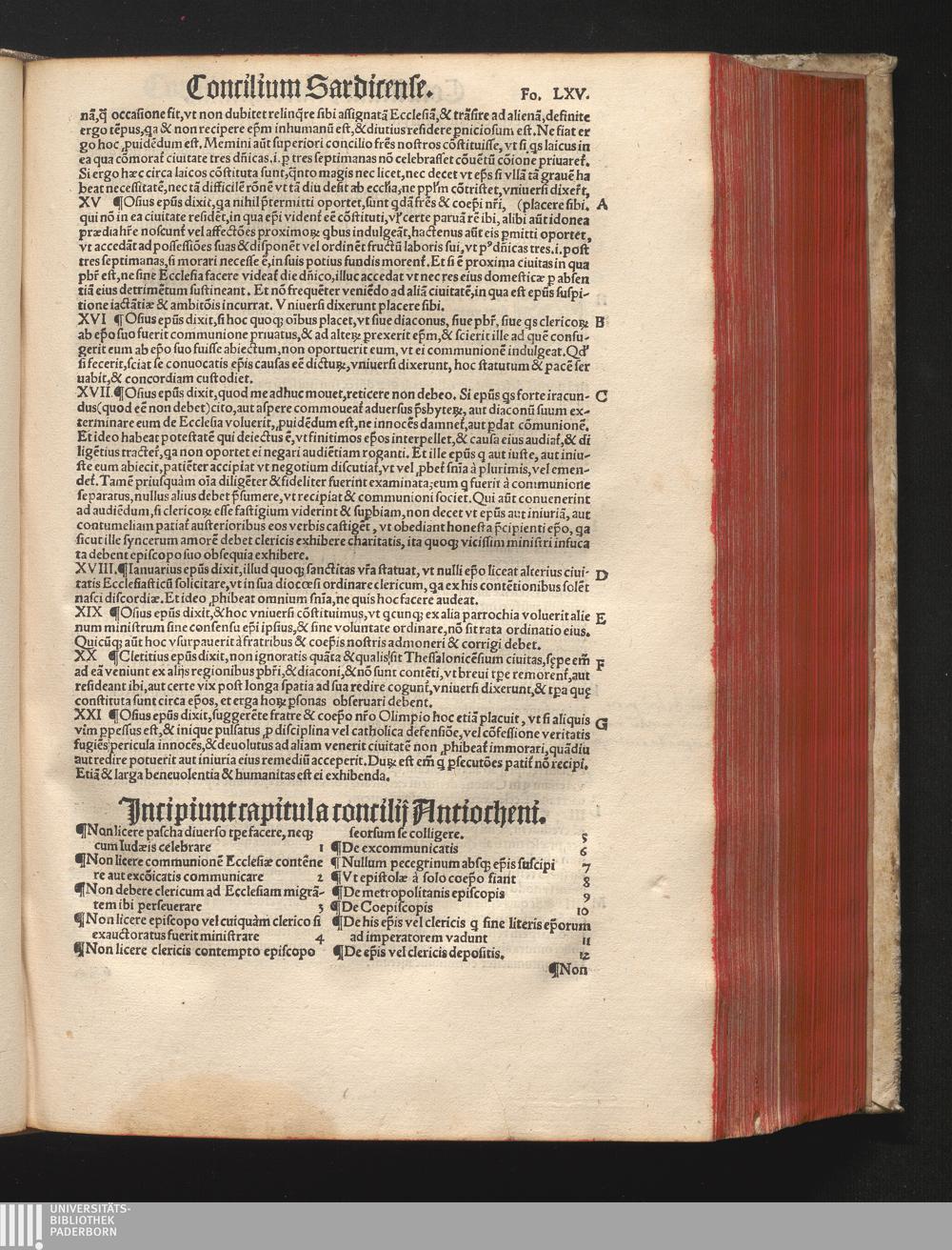 CONCILIO||RVM QVATVOR GENE=||ralium. Niceni. Constantinopolitani. Ephesini. et Calce=||donensis. Que diuus Gregorius magnus tanq[uam]|| quatuor Euangelia colit ac veneratur.|| : TOMVS PRIMVS.|| Quadraginta quoq[ue] septem Conciliorum prouincialium authenticorum.|| Decretorum etiam sexaginta nouem Pontificum Ab apostolis & eorundem canonibus,|| vsq[ue] ad Zachariam primum, Isidoro authore.|| Item Bulla Aurea Caroli IIII. Imperatoris, de electione Regis Romanorum.|| TOMVS SECVNDVS. ALI||ORVM ALIQVOT CONCILIORVM GENERALIVM.|| Practica quintæ synodi Constantinopolitanæ.|| Sexta synodus Constantinopolitana.|| Acta concilij Constantiensis.|| Decreta concilij Basiliensis.|| Approbatio actorum concilij Basiliensis per N. P.|| Confirmatio constitutionum Friderici & Carolinæ.|| / [Hrsg.: Iacobus Merlinus]