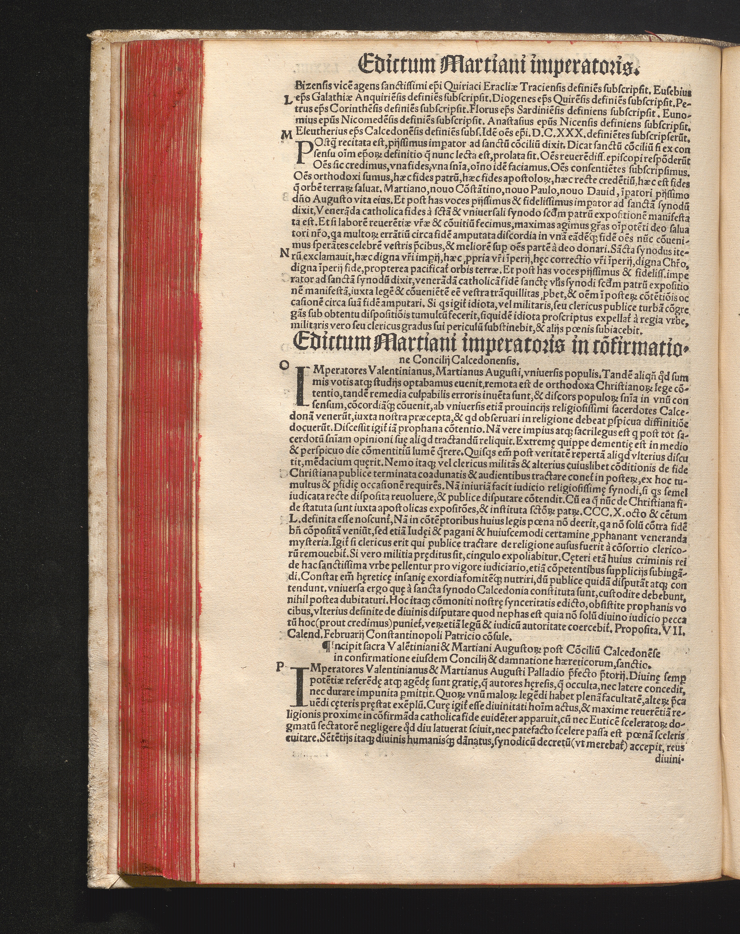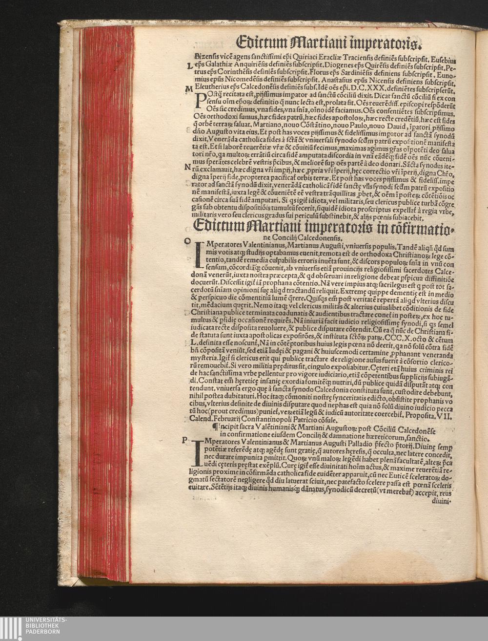 CONCILIO||RVM QVATVOR GENE=||ralium. Niceni. Constantinopolitani. Ephesini. et Calce=||donensis. Que diuus Gregorius magnus tanq[uam]|| quatuor Euangelia colit ac veneratur.|| : TOMVS PRIMVS.|| Quadraginta quoq[ue] septem Conciliorum prouincialium authenticorum.|| Decretorum etiam sexaginta nouem Pontificum Ab apostolis & eorundem canonibus,|| vsq[ue] ad Zachariam primum, Isidoro authore.|| Item Bulla Aurea Caroli IIII. Imperatoris, de electione Regis Romanorum.|| TOMVS SECVNDVS. ALI||ORVM ALIQVOT CONCILIORVM GENERALIVM.|| Practica quintæ synodi Constantinopolitanæ.|| Sexta synodus Constantinopolitana.|| Acta concilij Constantiensis.|| Decreta concilij Basiliensis.|| Approbatio actorum concilij Basiliensis per N. P.|| Confirmatio constitutionum Friderici & Carolinæ.|| / [Hrsg.: Iacobus Merlinus]