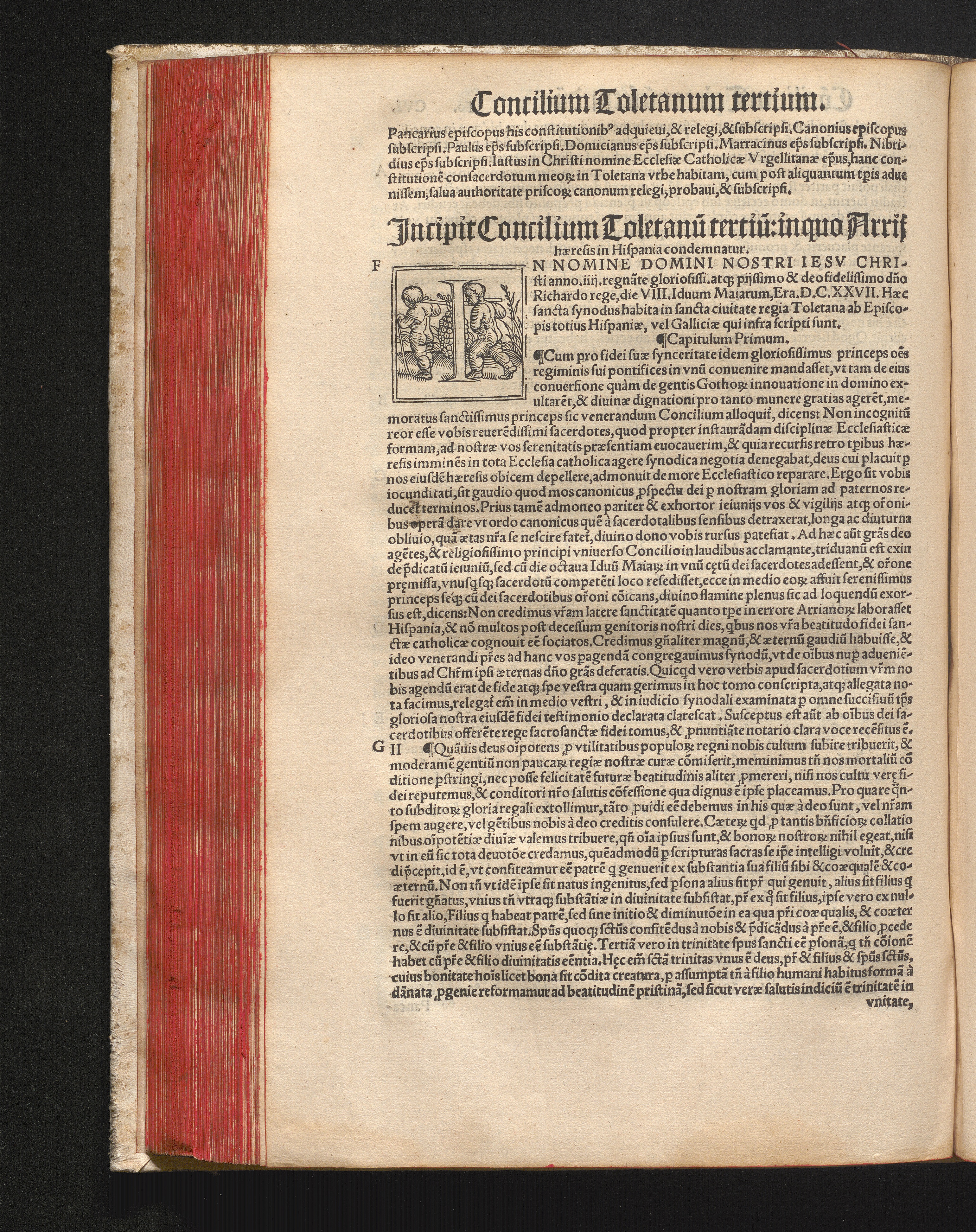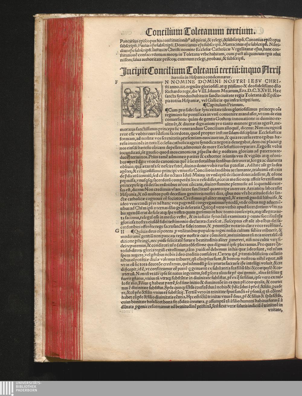 CONCILIO||RVM QVATVOR GENE=||ralium. Niceni. Constantinopolitani. Ephesini. et Calce=||donensis. Que diuus Gregorius magnus tanq[uam]|| quatuor Euangelia colit ac veneratur.|| : TOMVS PRIMVS.|| Quadraginta quoq[ue] septem Conciliorum prouincialium authenticorum.|| Decretorum etiam sexaginta nouem Pontificum Ab apostolis & eorundem canonibus,|| vsq[ue] ad Zachariam primum, Isidoro authore.|| Item Bulla Aurea Caroli IIII. Imperatoris, de electione Regis Romanorum.|| TOMVS SECVNDVS. ALI||ORVM ALIQVOT CONCILIORVM GENERALIVM.|| Practica quintæ synodi Constantinopolitanæ.|| Sexta synodus Constantinopolitana.|| Acta concilij Constantiensis.|| Decreta concilij Basiliensis.|| Approbatio actorum concilij Basiliensis per N. P.|| Confirmatio constitutionum Friderici & Carolinæ.|| / [Hrsg.: Iacobus Merlinus]