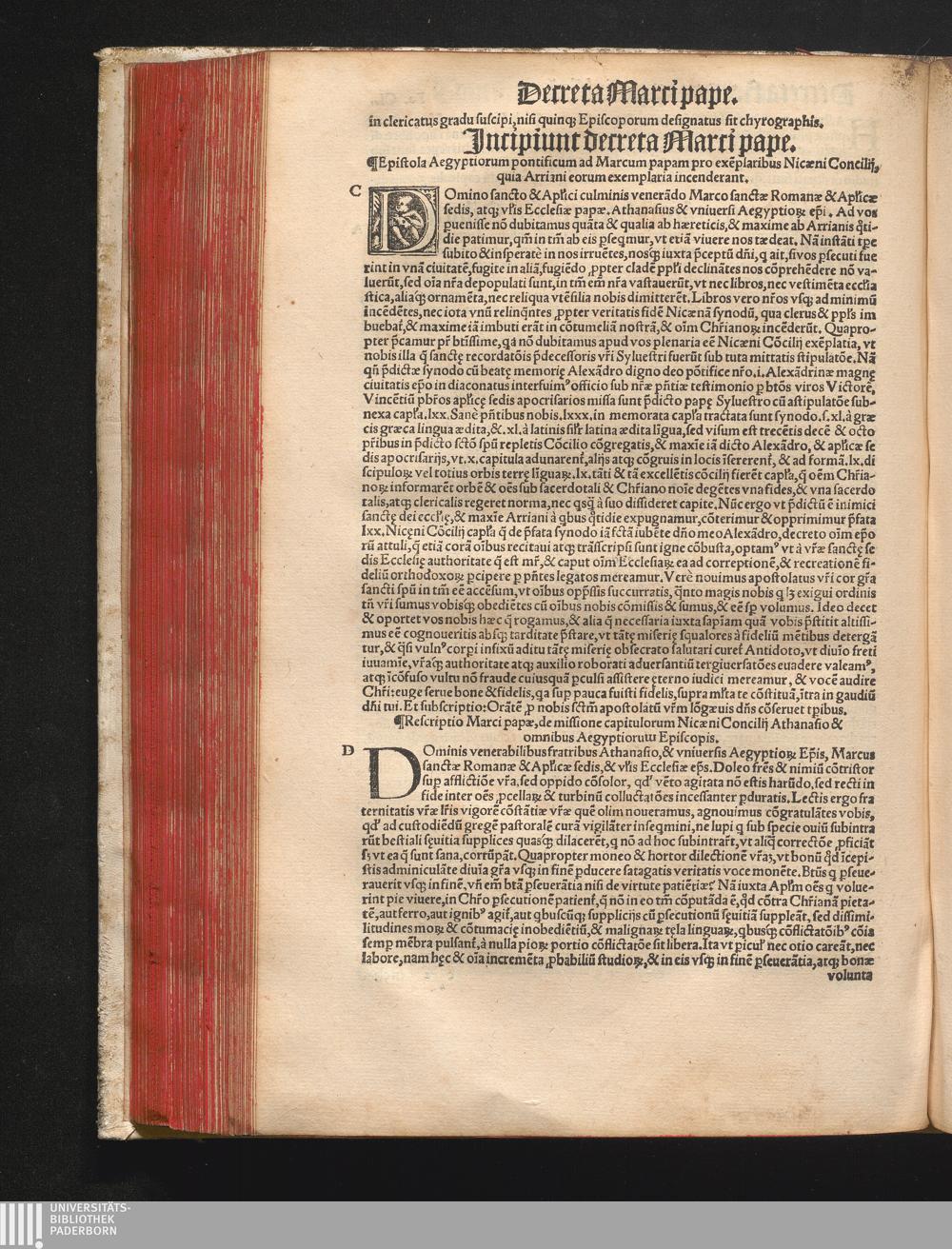 CONCILIO||RVM QVATVOR GENE=||ralium. Niceni. Constantinopolitani. Ephesini. et Calce=||donensis. Que diuus Gregorius magnus tanq[uam]|| quatuor Euangelia colit ac veneratur.|| : TOMVS PRIMVS.|| Quadraginta quoq[ue] septem Conciliorum prouincialium authenticorum.|| Decretorum etiam sexaginta nouem Pontificum Ab apostolis & eorundem canonibus,|| vsq[ue] ad Zachariam primum, Isidoro authore.|| Item Bulla Aurea Caroli IIII. Imperatoris, de electione Regis Romanorum.|| TOMVS SECVNDVS. ALI||ORVM ALIQVOT CONCILIORVM GENERALIVM.|| Practica quintæ synodi Constantinopolitanæ.|| Sexta synodus Constantinopolitana.|| Acta concilij Constantiensis.|| Decreta concilij Basiliensis.|| Approbatio actorum concilij Basiliensis per N. P.|| Confirmatio constitutionum Friderici & Carolinæ.|| / [Hrsg.: Iacobus Merlinus]