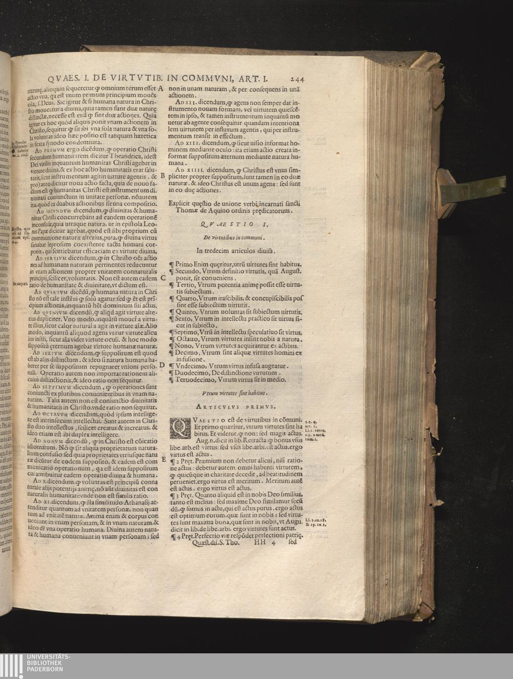 Qvaestio IIII. De virtutibus in cimmuni. Et habet 13. articulos.