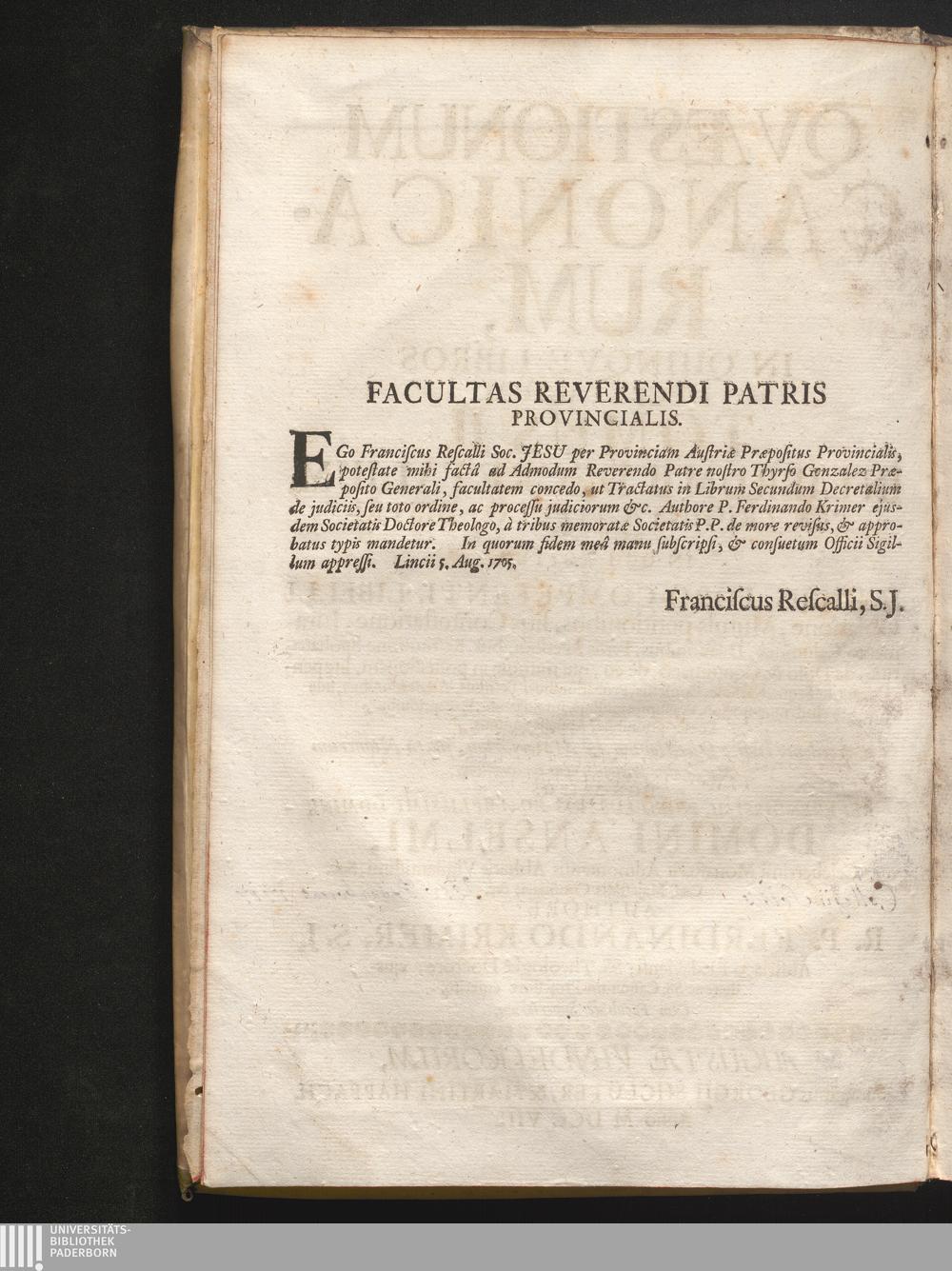 Facultas Reverendi Patris Provincialis.