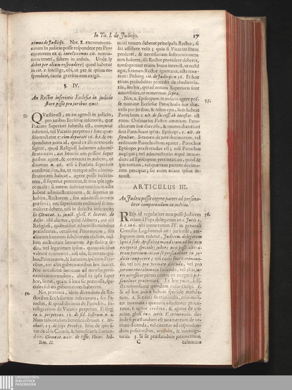 Tomus II (1708) In Librum II. Decretalium, Per Triginta Titulos Distributum, In Quo Agitur De Judiciis, Foro Competenti, Libelli Oblatione, Mutuis petitionibus, ...